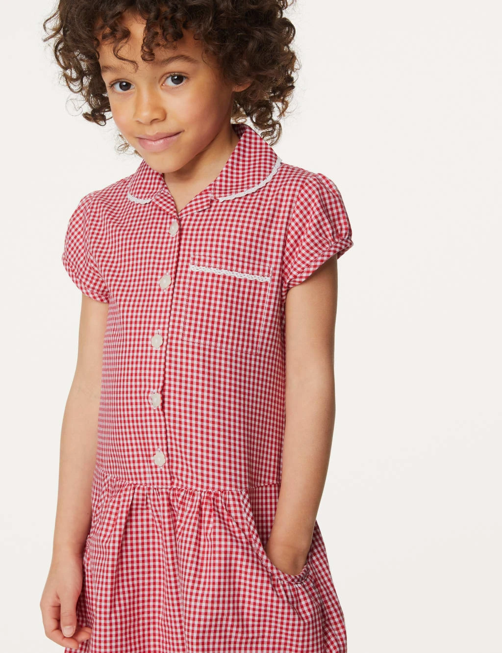 For style and comfort our two pack plus fit gingham dresses are the perfect option. They are made from a cotton-rich fabric and offer extra room through the body for added comfort throughout the day. Smart button-up front, and flared skirt with two handy pockets. Easy-to-iron finish means it just needs a quick press and it’s ready to go. We only ever use responsibly sourced cotton for our clothes.