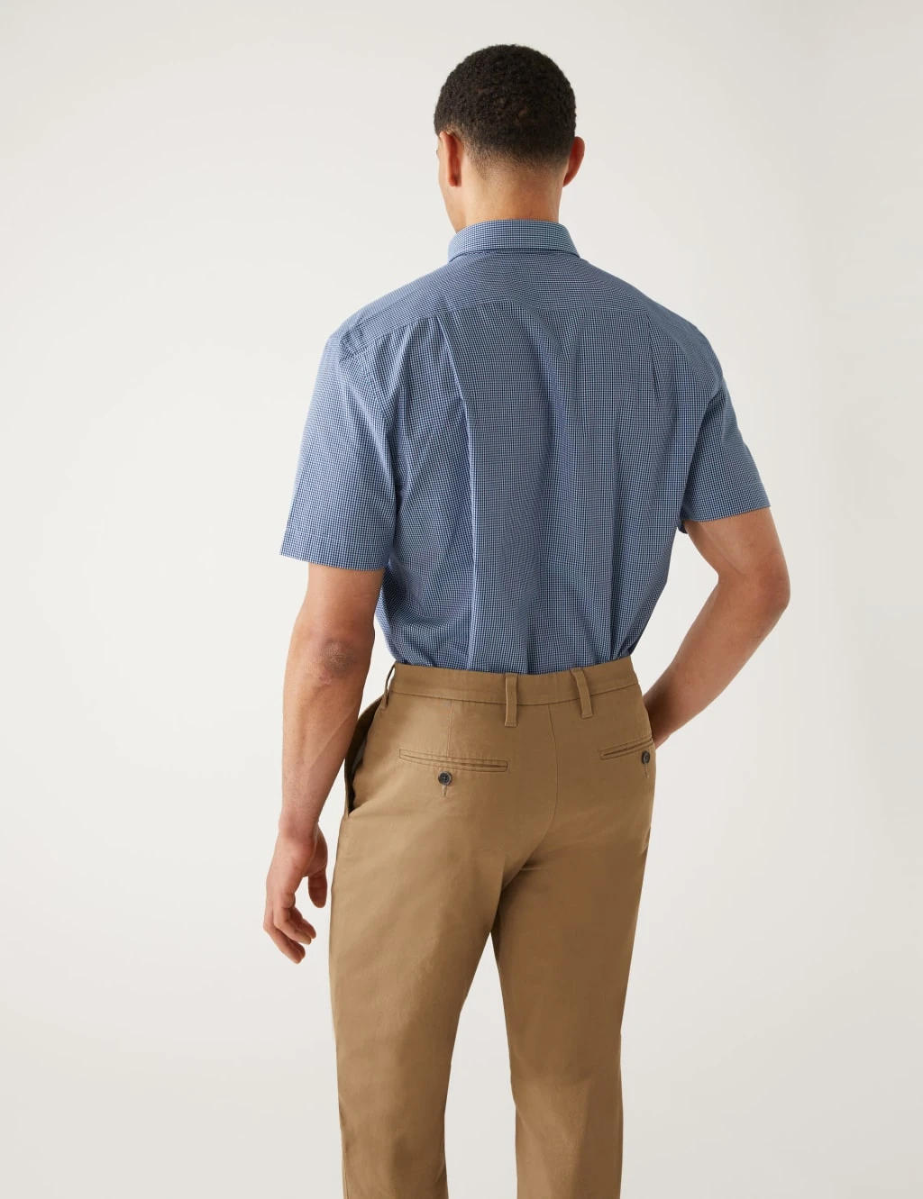 These cotton-blend shirts are made with short sleeves for comfort when the weather turns warmer. Regular fit, with a neat button-down collar. Our easy-to-iron finish makes light work of laundering your new shirts. Pack contains checked designs in two different colourways.