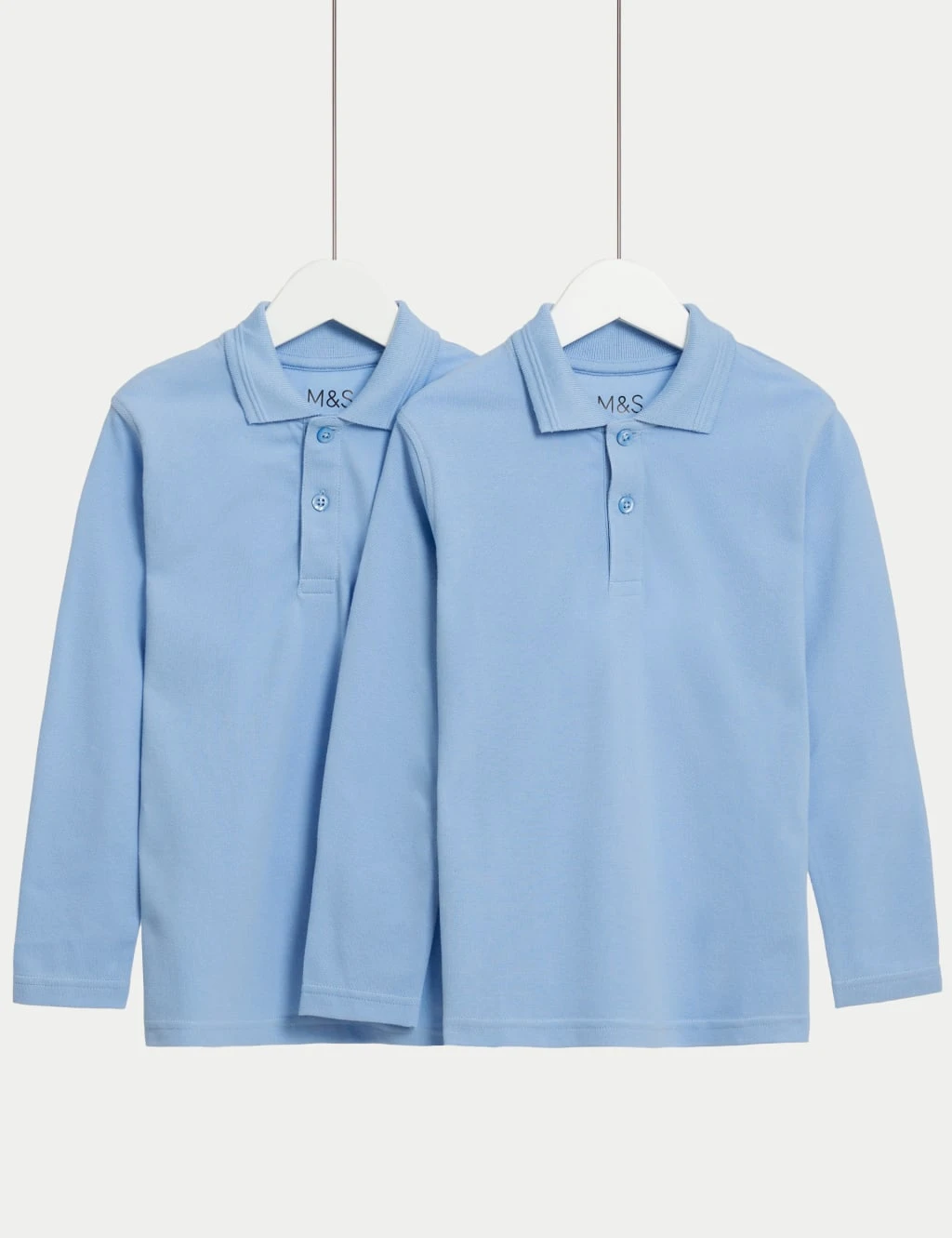 Kit them out for the new term with this pack of comfy pure cotton polo shirts. They come in our classic regular fit, with a smart collared neckline and long sleeves. StayNew™ technology reduces bobbling and colour loss for longer-lasting quality. Our Stain Resistant finish will ensure these shirts won’t ruin from spills or splashes. Made with recycled thread and buttons. We only ever use responsibly sourced cotton for our clothes. Regular Fit – our classic regular fit.