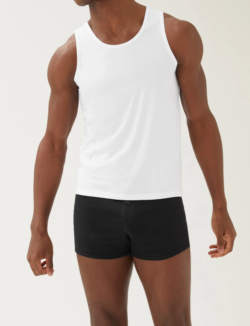 These cotton-rich vests add a breathable extra layer for cooler weather. Sleeveless design, with 4-way stretch for a smooth, comfortable wear. Our Cool Comfort™ fabric draws moisture away from your skin, while our antibacterial Cool & Fresh™ technology helps you feel dry and fresh throughout the day. We only ever use responsibly sourced cotton for our clothes.