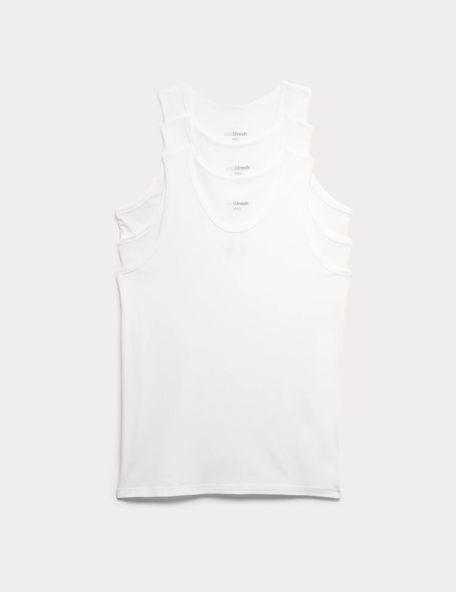 The cotton-rich vests in this three-pack provide a welcome extra layer for cooler days. Regular fit, in a sleeveless style with a round neckline. Cool & Fresh™ technology keeps your fresh and comfortable all day, while a StayNew™ finish maintains the colour and handfeel. M&S Collection: easy-to-wear wardrobe staples that combine classic and contemporary styles.