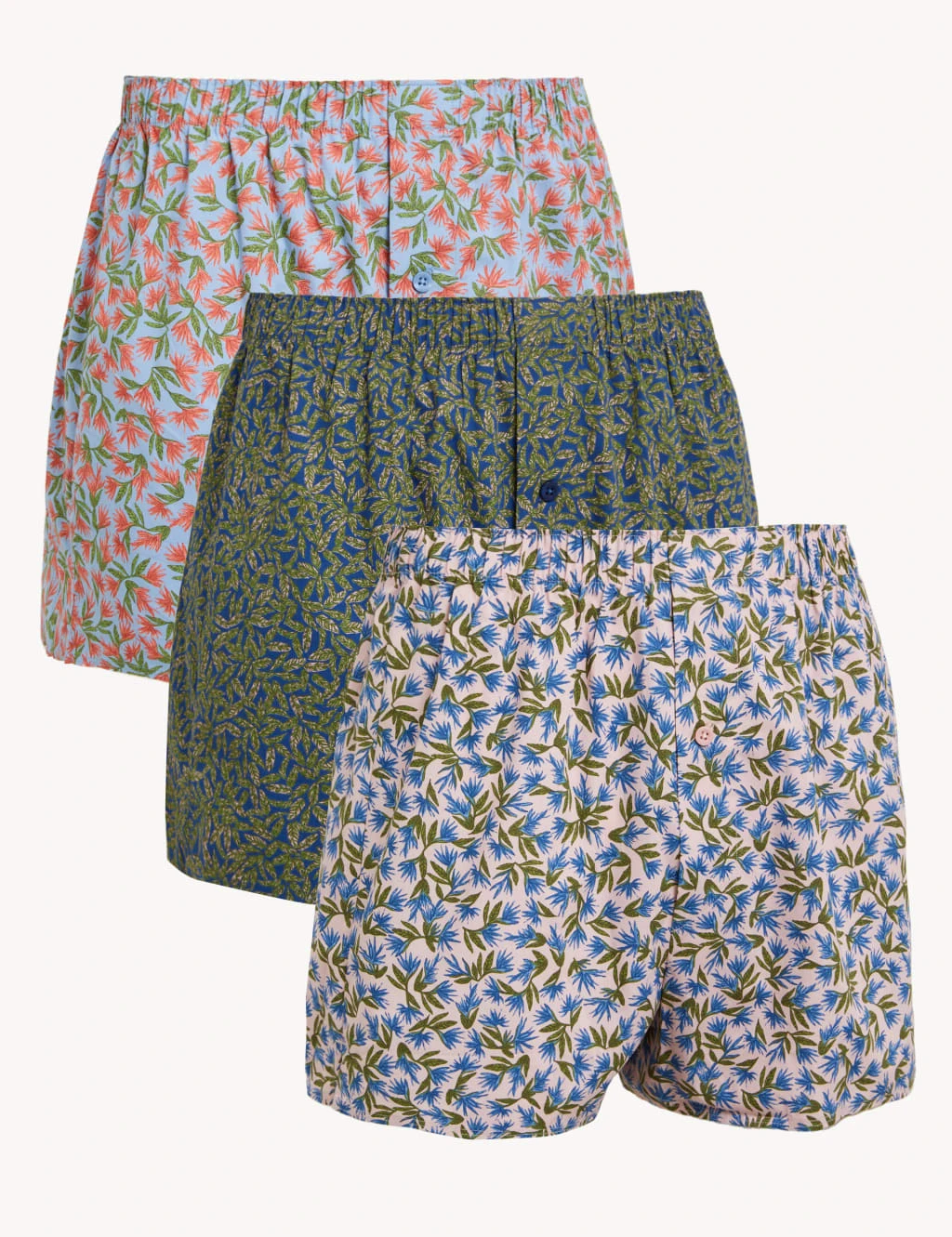 Add some tropical fun to your underwear drawer with these pure cotton woven boxers. Cut to a comfortable looser fit with a functional button fly fastening. Our clever StayNew™ technology will keep them looking newer for longer.