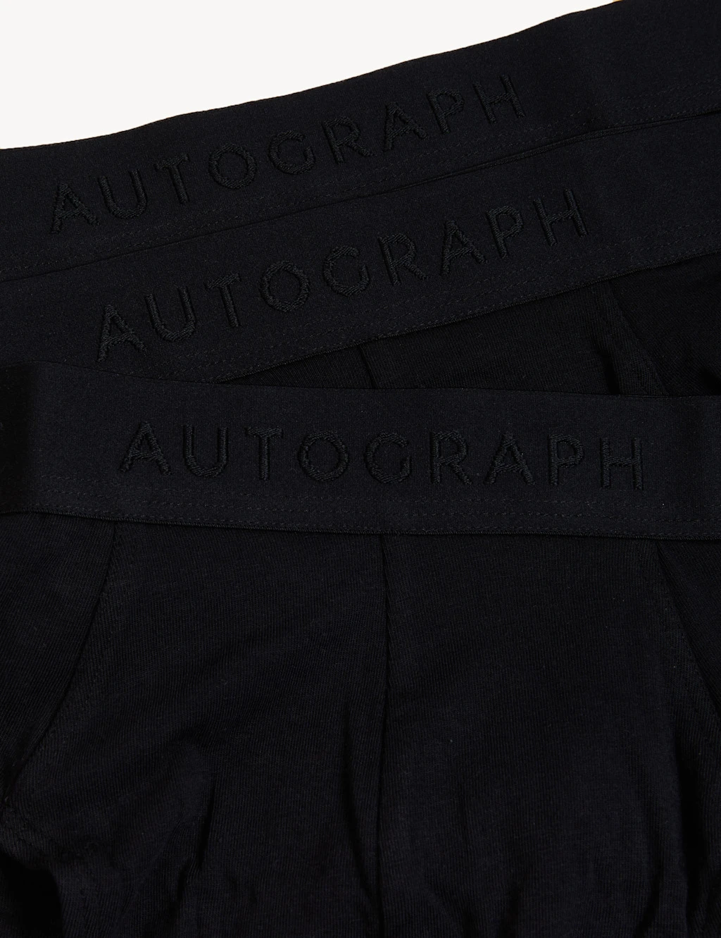 Top up on those stylish essentials with this three-pack of Supima® cotton-modal blend briefs from our Autograph range. They’re cut to a classic regular fit and have subtle Autograph branding along the elastic waistband. Our Flexifit™ fabric is made with stretchy Lycra® for all-day comfort.
