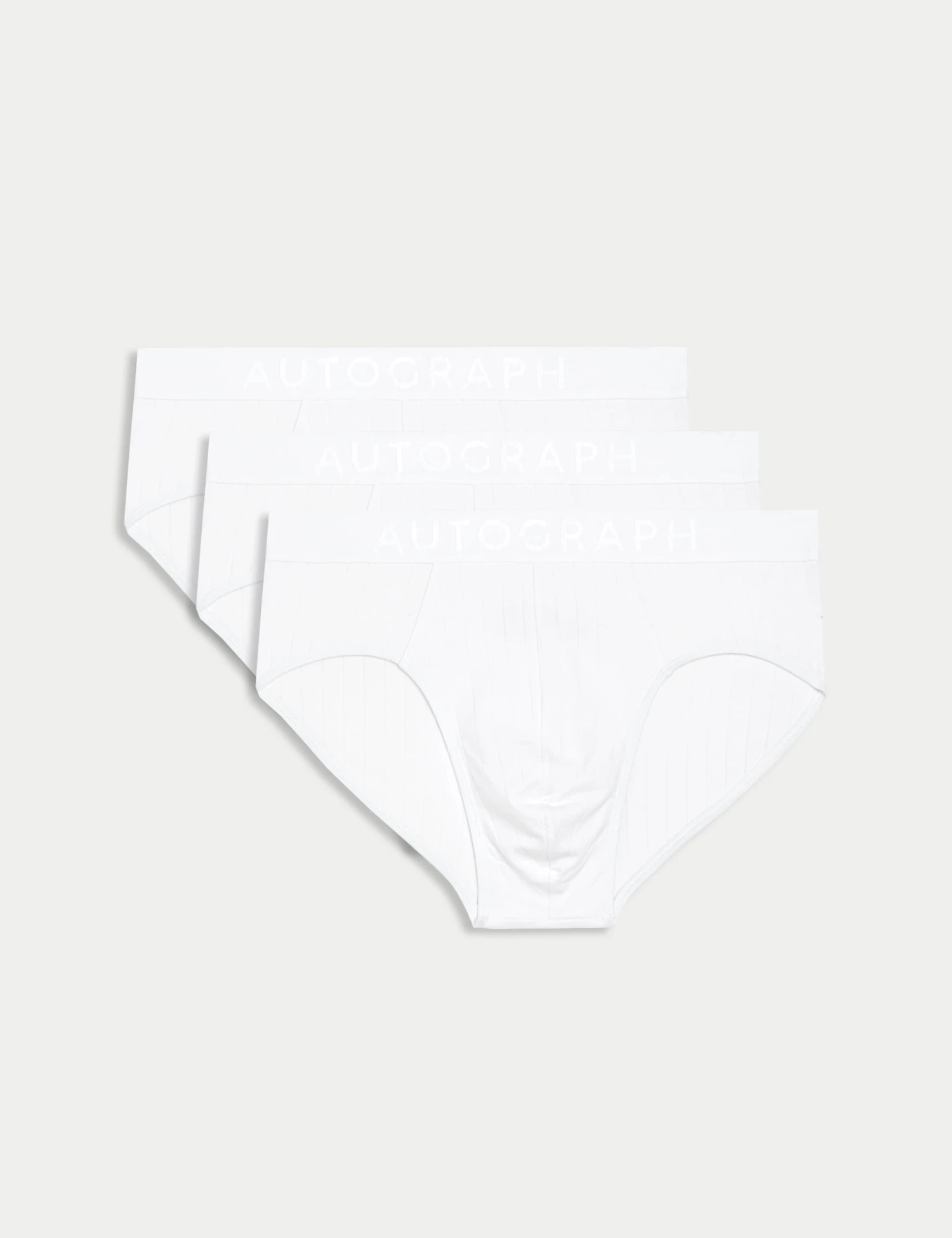 These premium briefs from our Autograph collection are made from smooth Supima® cotton-rich fabric with drop needle texture that’s gentle on your skin. Regular fit, with a comfortable elasticated waistband that’s subtly branded for a signature touch. Drop needle fabric creates a textured, striped effect. StayNew™ technology maintains the colour and finish, wash after wash. This pack includes three identical pairs. Autograph: premium investment pieces featuring contemporary cuts and refined finishing touches.