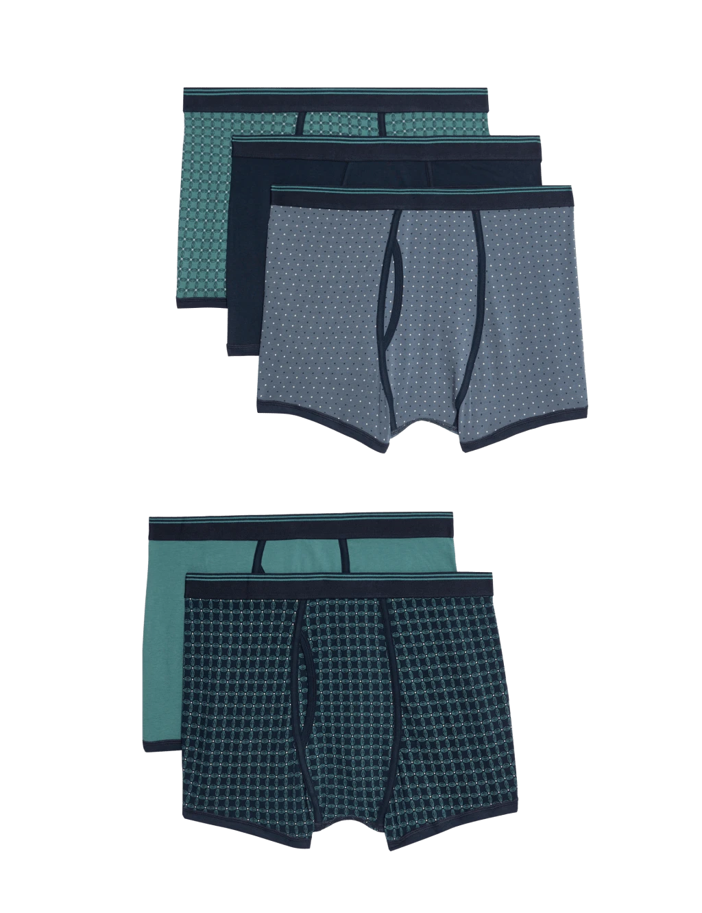 Refresh your underwear drawer with these cotton-rich trunks. added stretch for easy movement. Comfy regular fit. Elasticated waist. Keyhole fly. StayNew™ technology maintains their colour and finish for longer. Our Cool & Fresh™ finish plus moisture wicking and anti-bacterial properties help keep you dry and odour-free. Selection of geometric and plain designs. M&S Collection: easy-to-wear wardrobe staples that combine classic and contemporary styles.