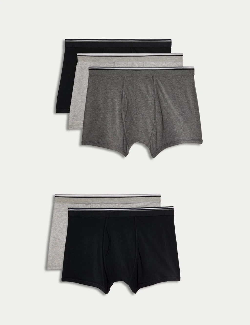 Stock up on your daily essentials with these cotton-rich trunks. Handy five-pack, made to a regular fit, with a contemporary marl design and a striped waistband. Our Cool & Fresh™ finish keeps you feeling dry all day. StayNew™ technology maintains the colour and finish, wash after wash. M&S Collection: easy-to-wear wardrobe staples that combine classic and contemporary styles.