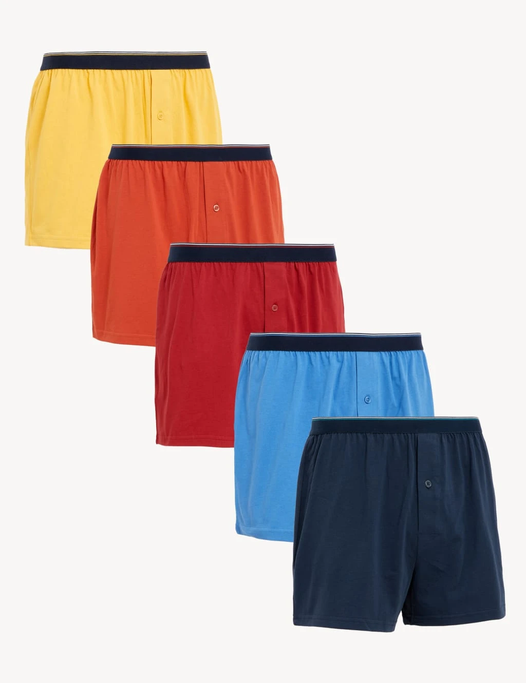Refresh your underwear drawer with these pure cotton jersey boxers. Comfy loose fit with functional button flys. Our Cool & Fresh™ finish draws moisture away from the skin to keep you feeling dry all day. StayNew™ technology maintains the colour and finish wash after wash.