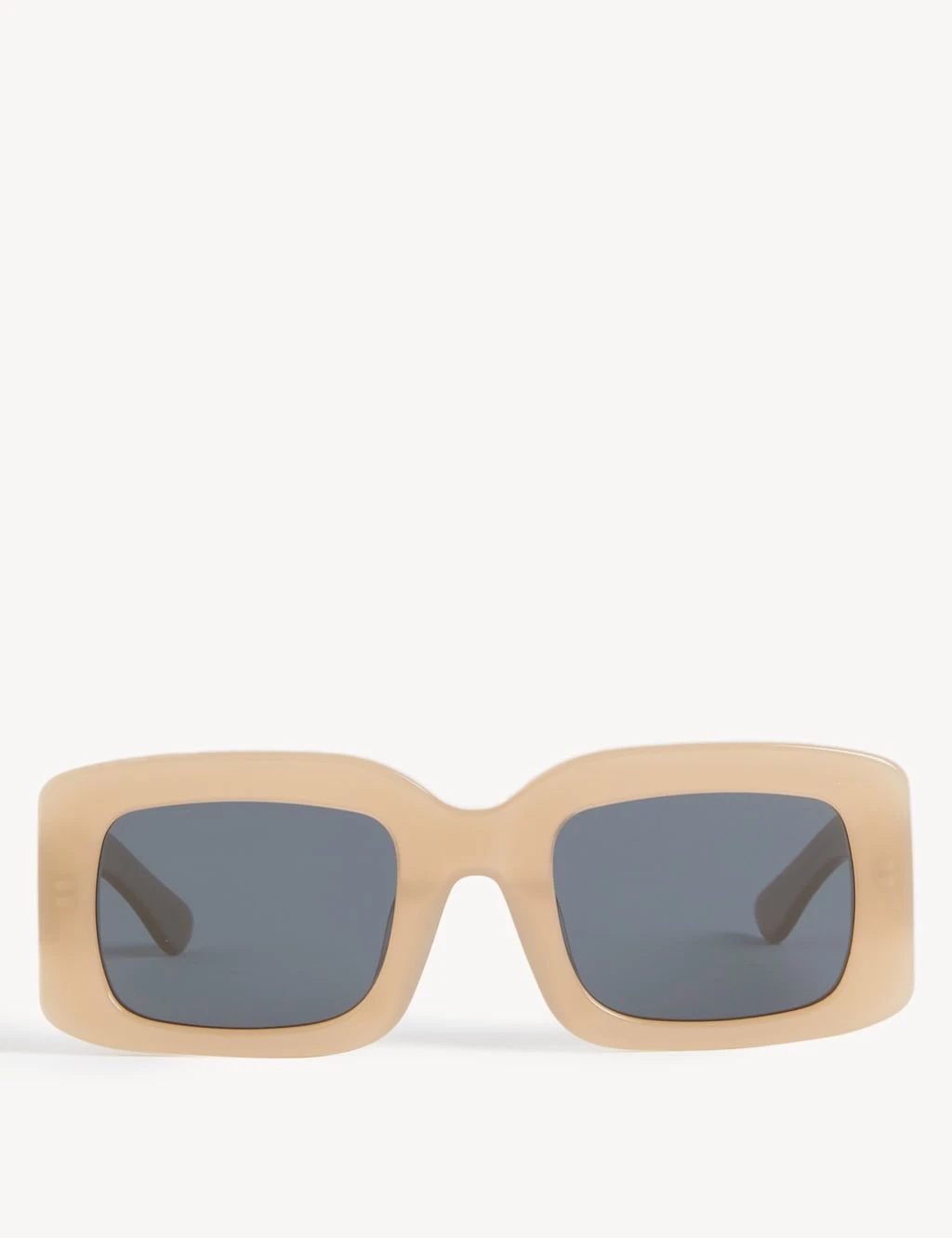 Go for glamour with these acetate sunglasses. Square frames create a sophisticated retro look.
