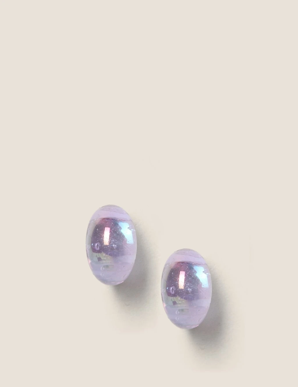 These autograph small purple Iridescent hoops are perfect to brighten up any outfit. These earrings are made from recycled materials