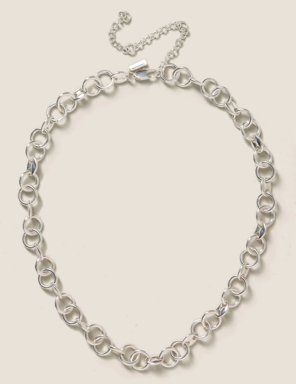 This Autograph Silver tone multi link chunky short chain necklace can be worn alone or layered. This is made out of recycled materials