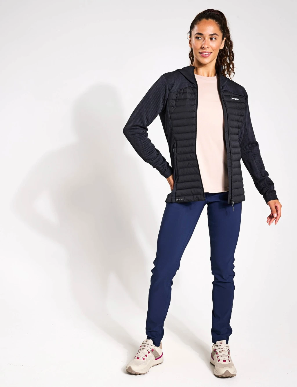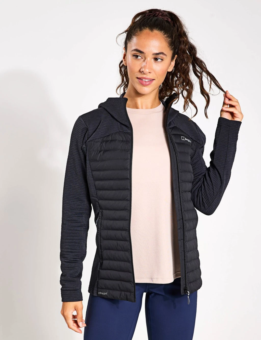 This sports jacket from Berghaus is your ultimate companion for active pursuits, blending warmth and flexibility seamlessly. This regular fit style features a full-length zip fastening and a protective hood, ensuring you’re prepared for any weather challenge. Its clever hybrid design combines Hydroloft® Polyball insulation in the core to lock in heat, while the cosy knitted fleece arms and sides provide exceptional freedom of movement.