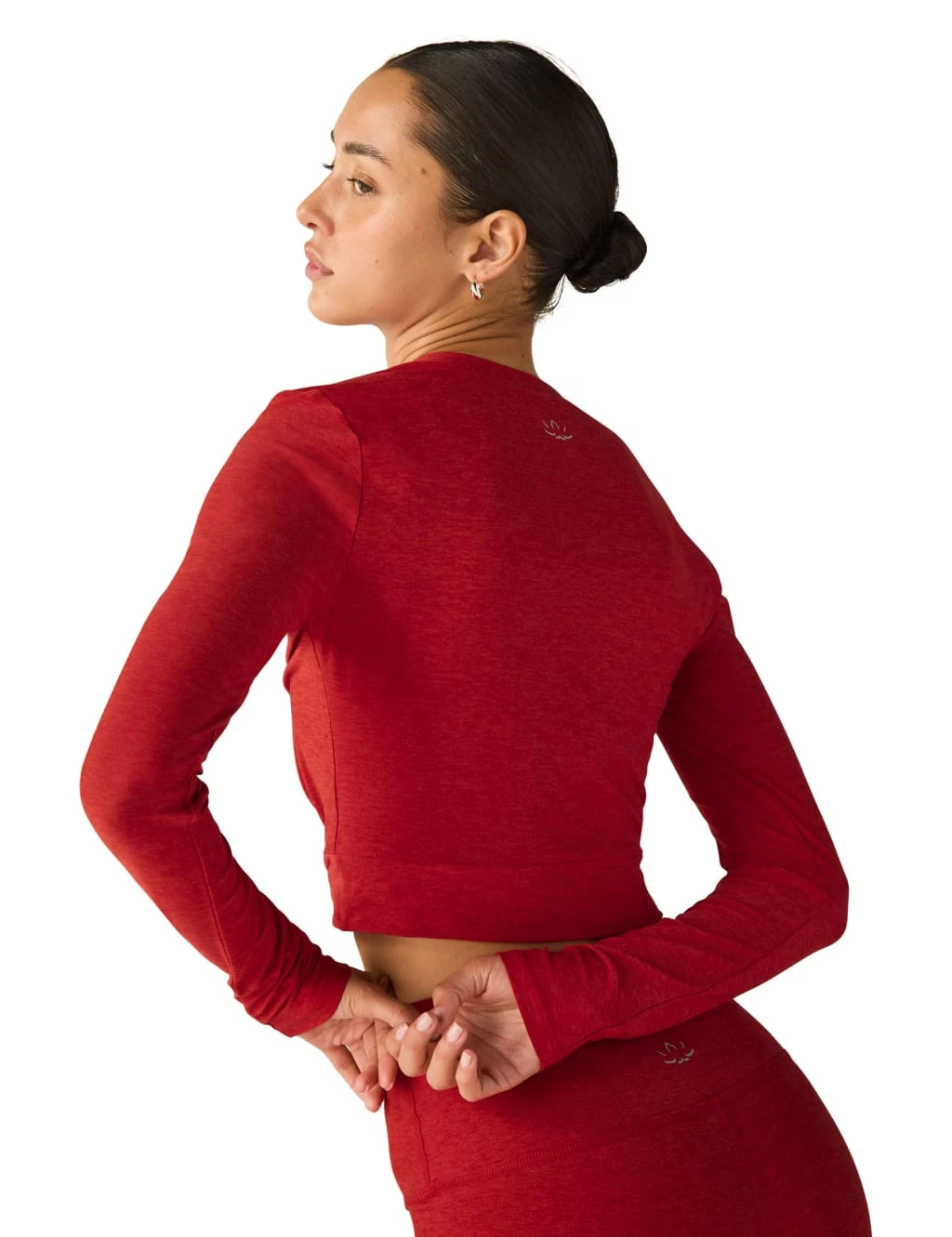 This crew-neck yoga top from Beyond Yoga will add an individual touch to your activewear collection. It’s made from soft, lightweight fabric in a regular fit, with long sleeves and a pretty twisted hem. This contemporary piece is slightly cropped for an airy feel.