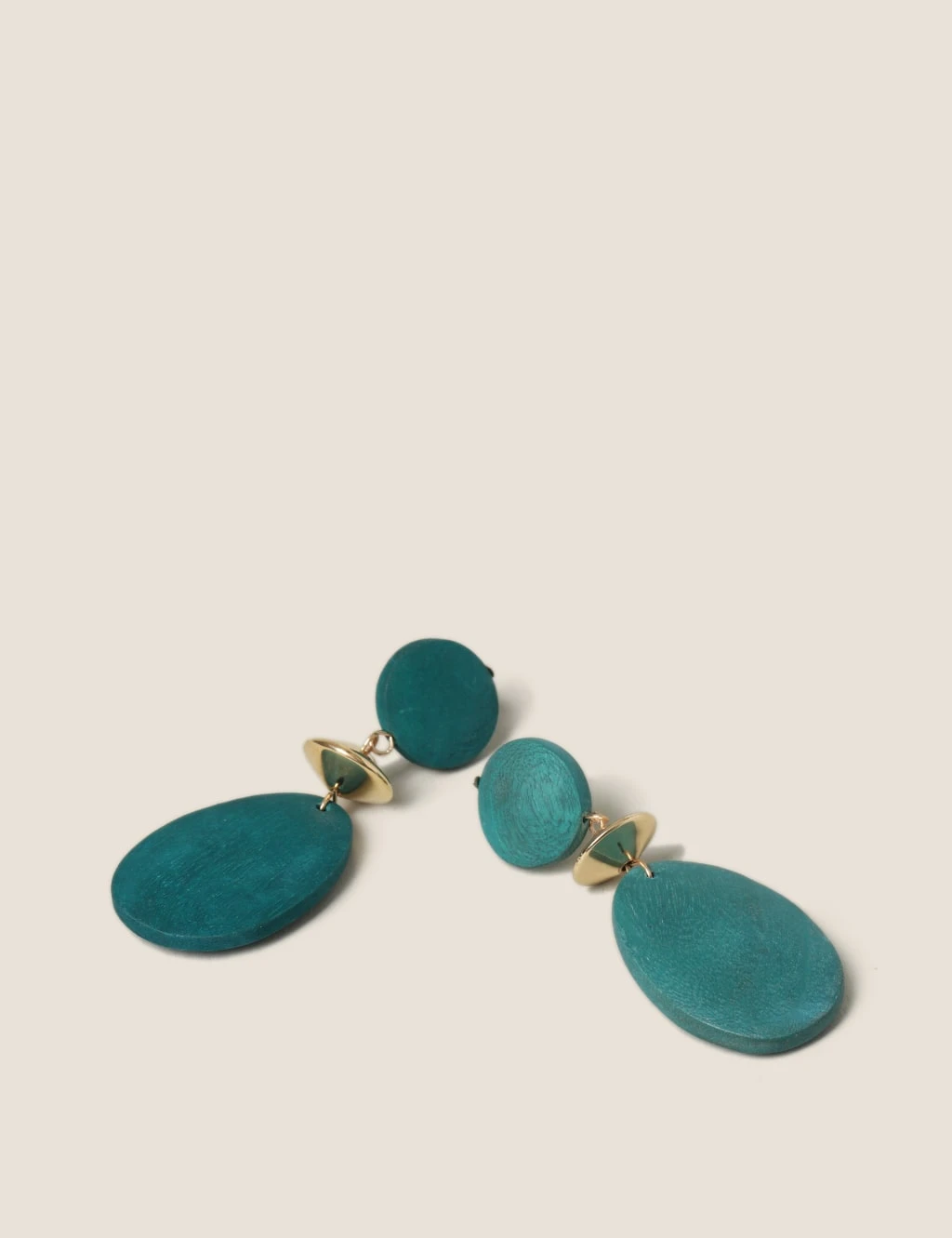 These Turquoise wood effect drop earrings with Gold accents in-between to create an eye catching accessory