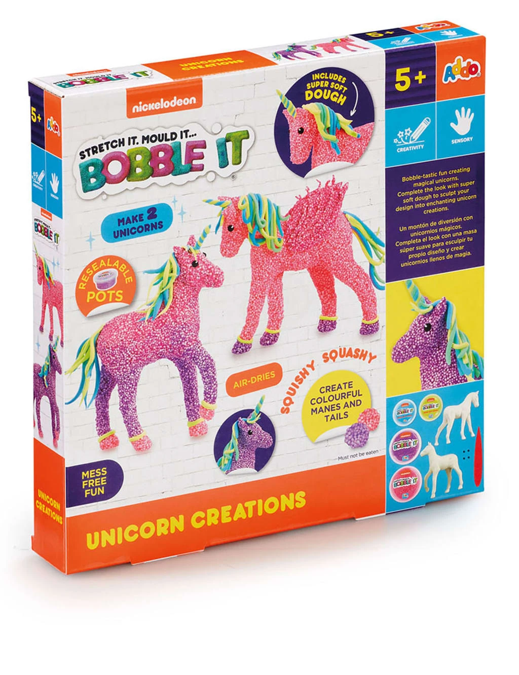 Let their imagination run wild with this unicorn kit from Nickelodeon. Children can design two of their very own pink and purple bobble unicorns, completing the look with soft dough for the horn, mane and tail and fun googly eyes. The mess-free Bobble It is air drying and squishy – they can mould it however they like and even mix and blend colours. The set includes two Bobble It pots, two Super Soft Dough pots, two unicorn figures, four googly eyes and a tool for putting it all together. The pots are resealable to keep the ingredients safe.