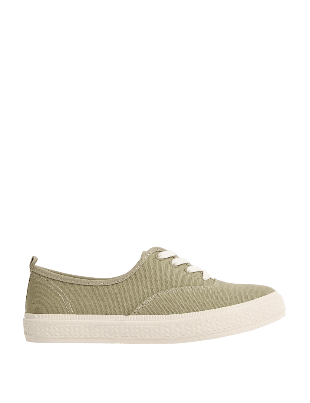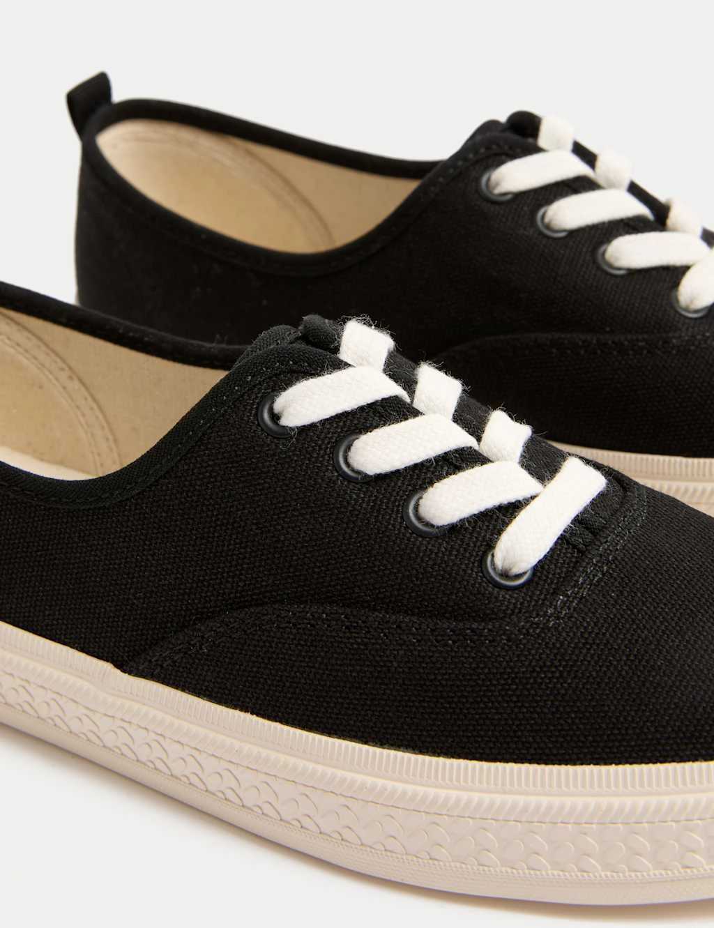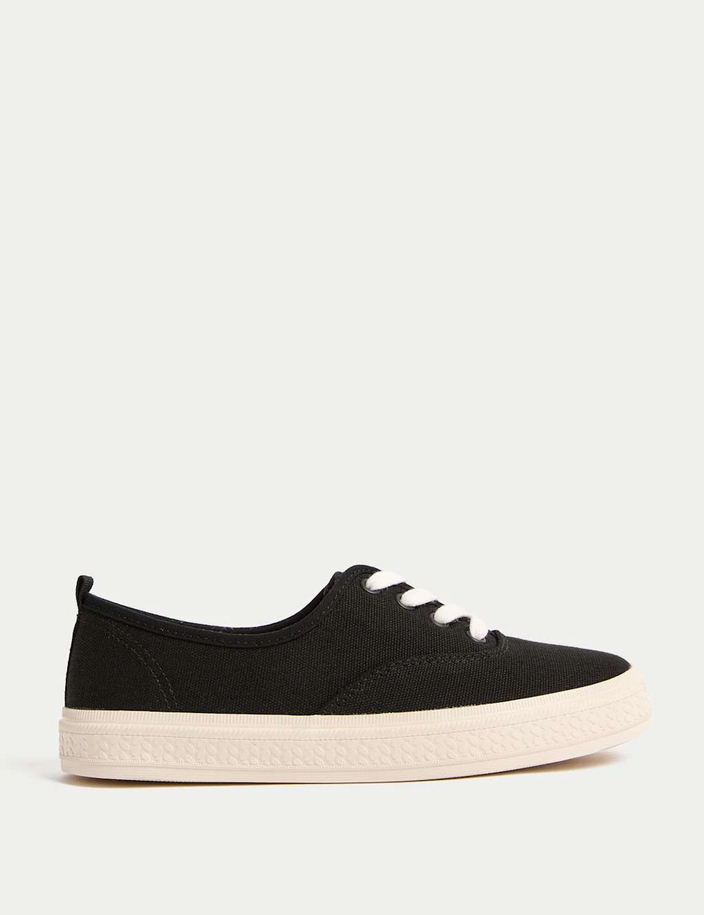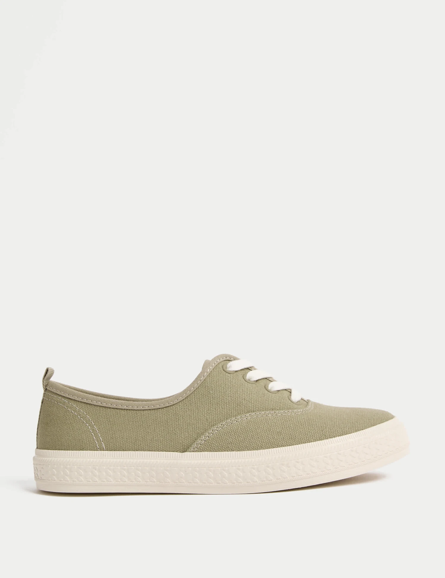 These timeless canvas trainers are a versatile addition to your casual footwear collection. Featuring a classic lace-up design with contrast stitching and a cleated sole. Our antibacterial Freshfeet™ technology keeps feet fresh by combating odours. M&S Collection: easy-to-wear wardrobe staples that combine classic and contemporary styles.