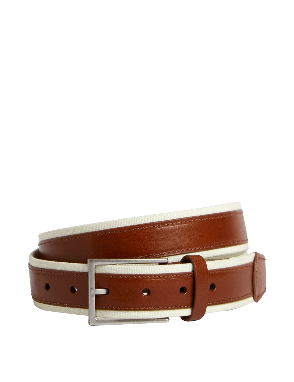 This belt is crafted from canvas fabric and features a real leather trim. It fastens with a timeless buckle for a secure fit. M&S Collection: easy-to-wear wardrobe staples that combine classic and contemporary styles.
