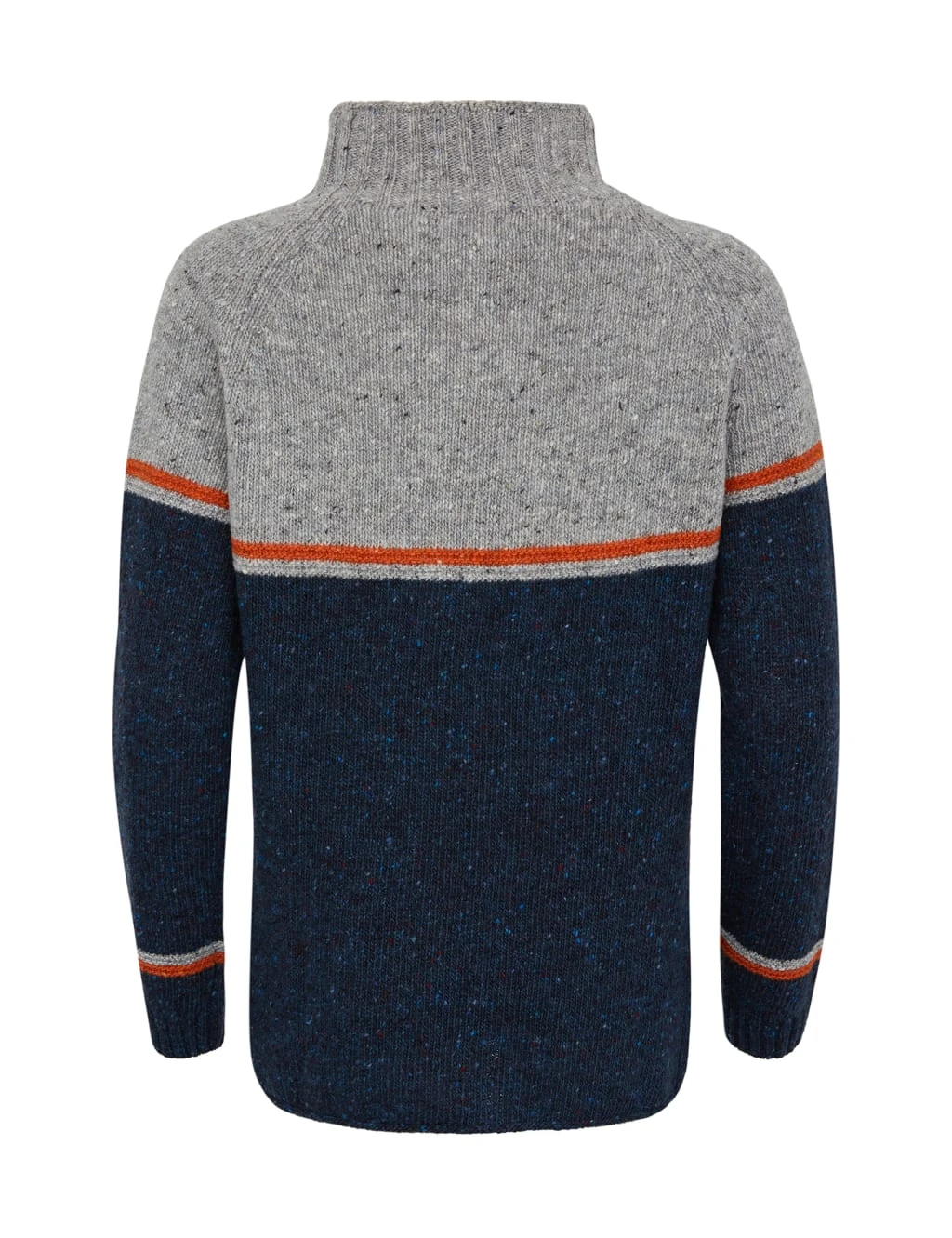 This striking Celtic & Co jumper is crafted from genuine Donegal wool. The yarn is spun and dyed in Ireland for a beautifully textured authentic look. Made in a generous fit for easy layering, this sweater has a funnel neck and ribbed trims to keep in the warmth. It features a timeless colour-block design, with a flecked finish and contrast stitching at the chest and cuffs.