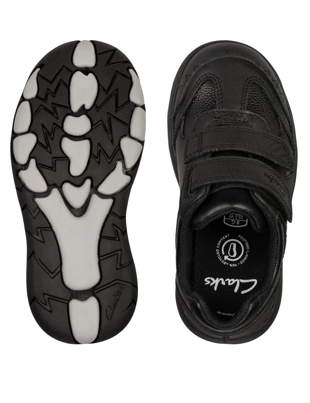 With dino spikes up the heel and a giant footprint on the sole, these leather school shoes are super playful. Riptape fastening means easy on-off, while a grippy sole offers extra support. These comfy, padded shoes are finished with a 50% recycled mesh lining and an antibacterial Agion® footbed to keep feet fresh.
