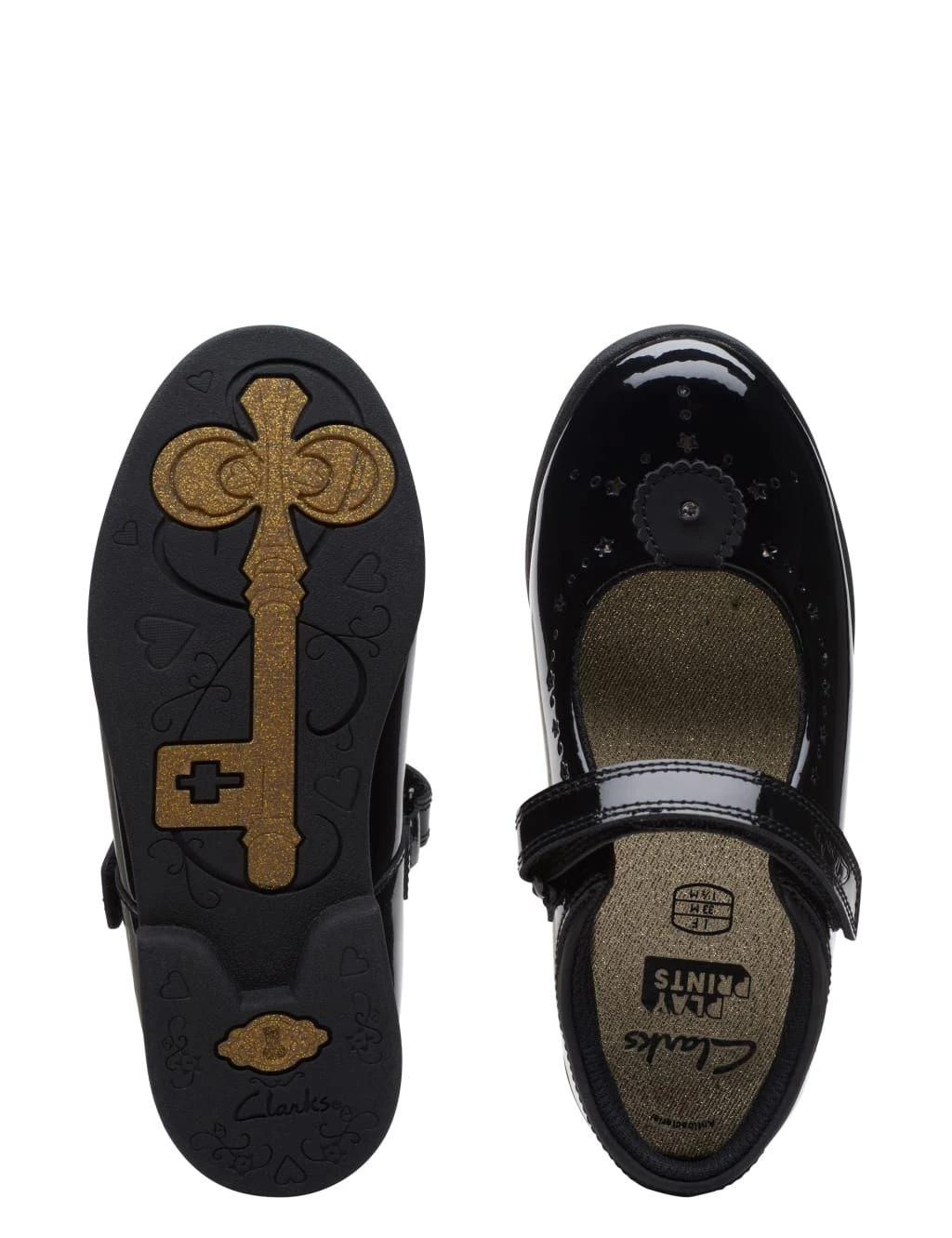 They’ll be ready to step up for school with these Mary Jane school shoes from Clarks. This pair is crafted from durable patent leather and designed with a round toe plus easy riptape fastening. The uppers are detailed with laser-cut stars, and the soles are adorned with the iconic magic key that takes cues from the brand’s archives.