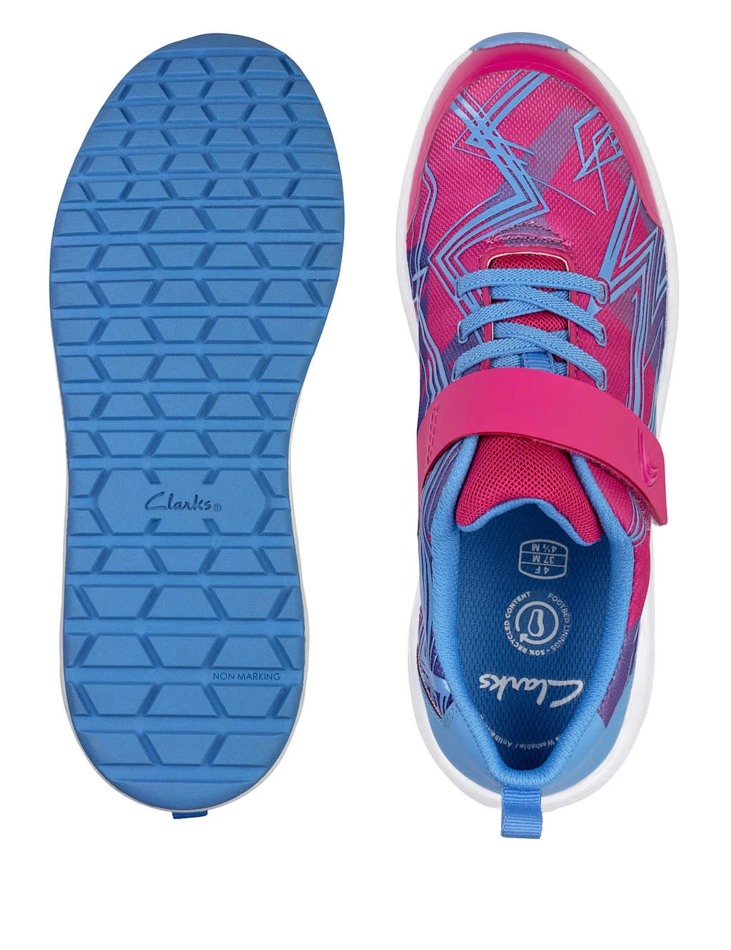 These dynamic trainers from Clarks will provide ultimate comfort to active feet. The standard fit offers comfort while a lace-up and riptape fastening allows for quick changes. The compressed midsole makes for maximum shock absorption while a cleated rubber sole offers flexible movement and support.