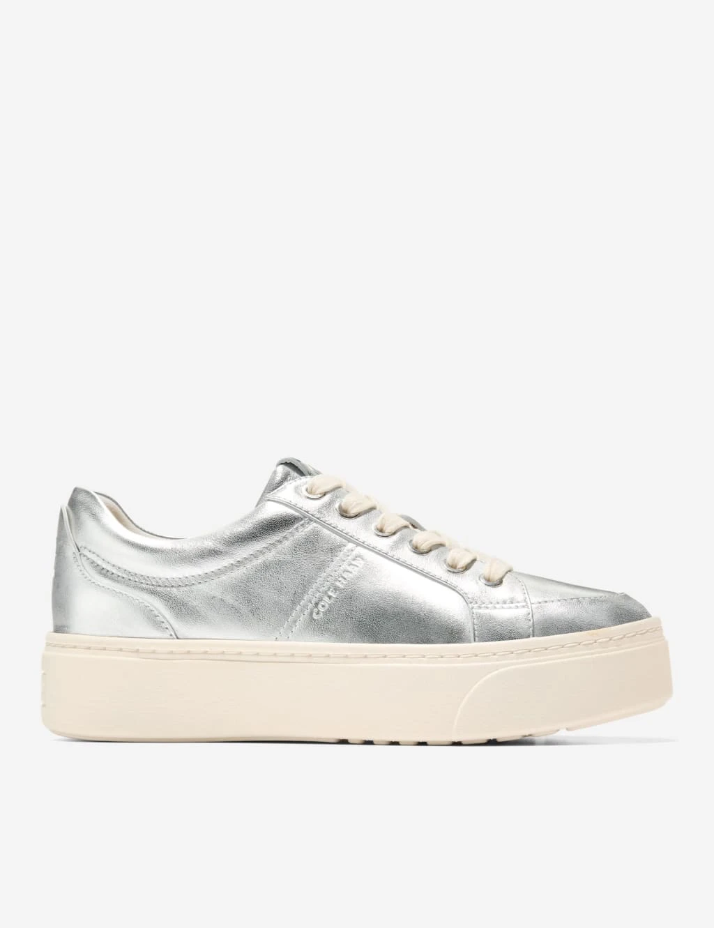 Add some statement style to your off-duty looks with these leather trainers from Cole Haan. They have a chunky platform sole for a touch of height, plus a metallic upper for standout style. The lace upper is complete with branded detailing on the tongue.