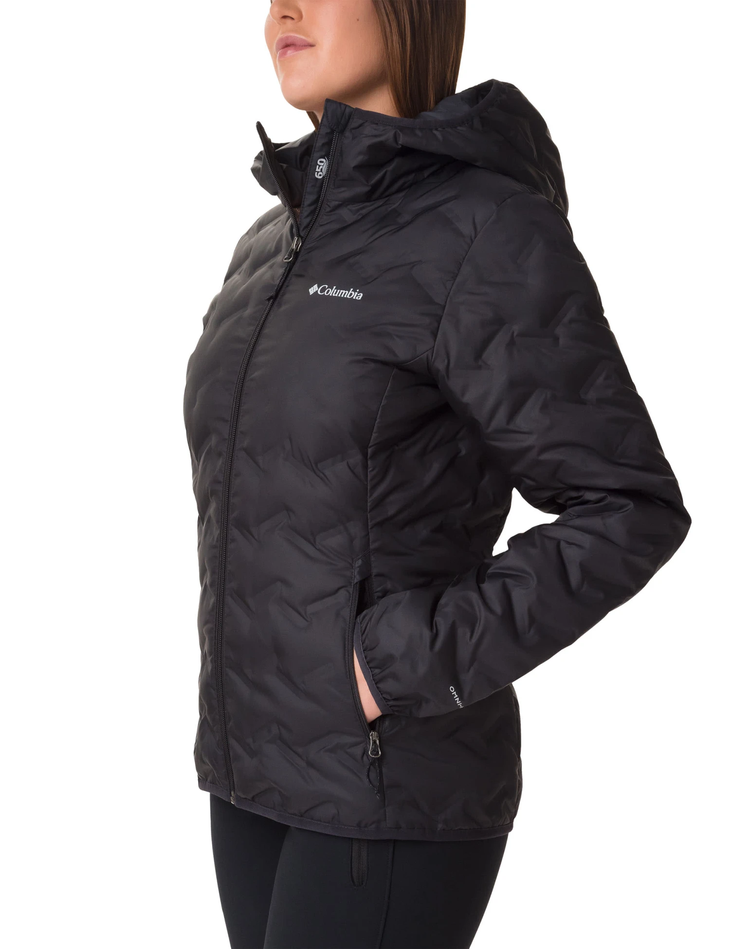 Omni-Heat™ thermal reflective., Heat Seal Construction., Omni-Shield™ advanced repellency., RDS certified down., 650 fill power down insulation., Scuba hood., Binding at hood, cuff, and hem., Chin guard., Zippered hand pockets.