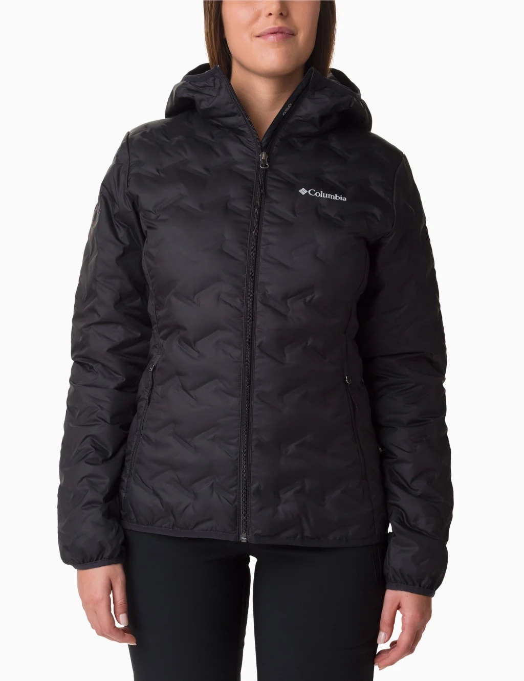 For winter trails or cold urban adventures, this water-resistant Columbia down jacket with a feminine look and fit is ideal.