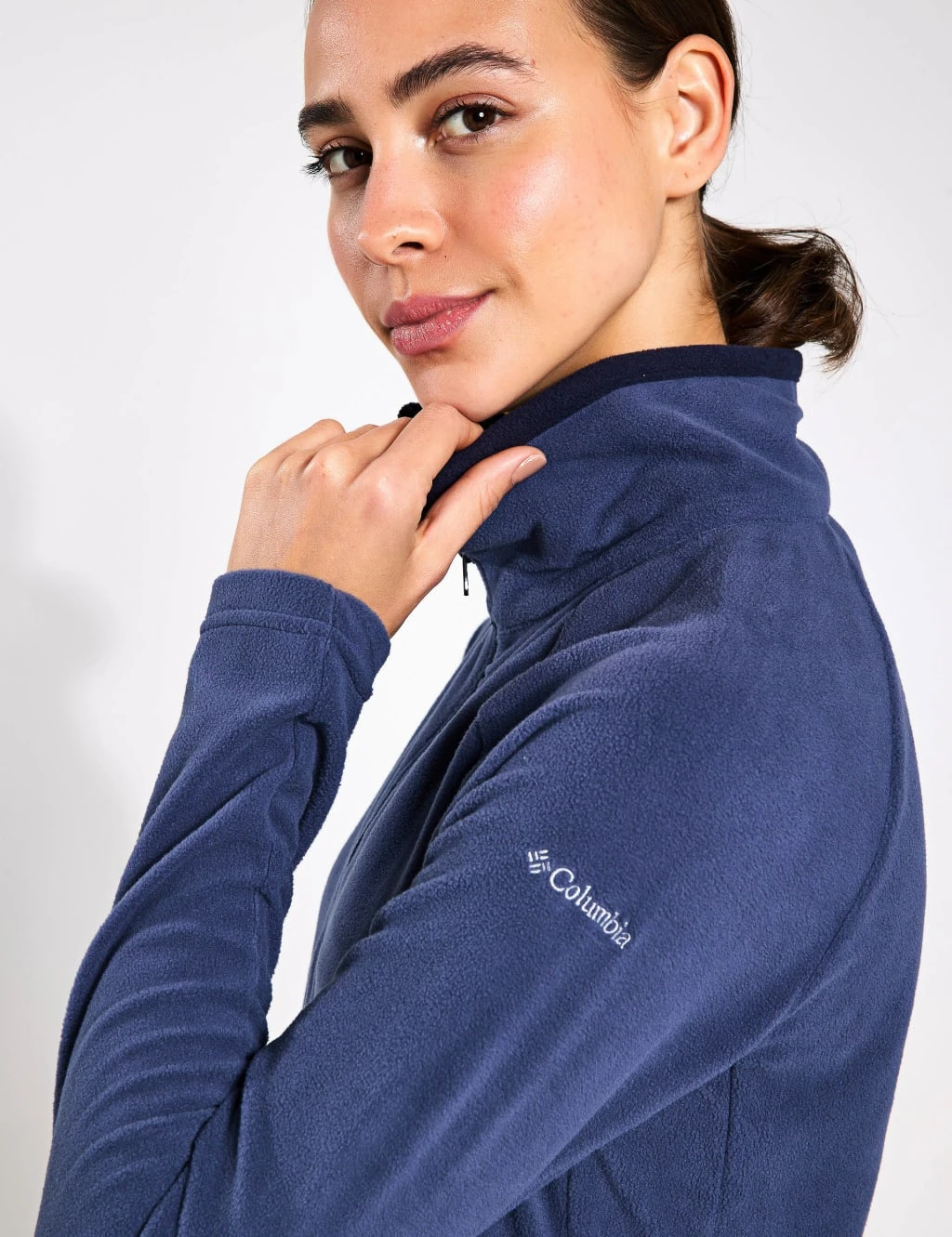 Keep warm on outdoor adventures with this Columbia fleece jacket. It’s made in a comfy regular fit, with a half-zip funnel neckline for extra cosiness. Raglan sleeves and shaped panels ensure a flattering look and a comfortable feel.
