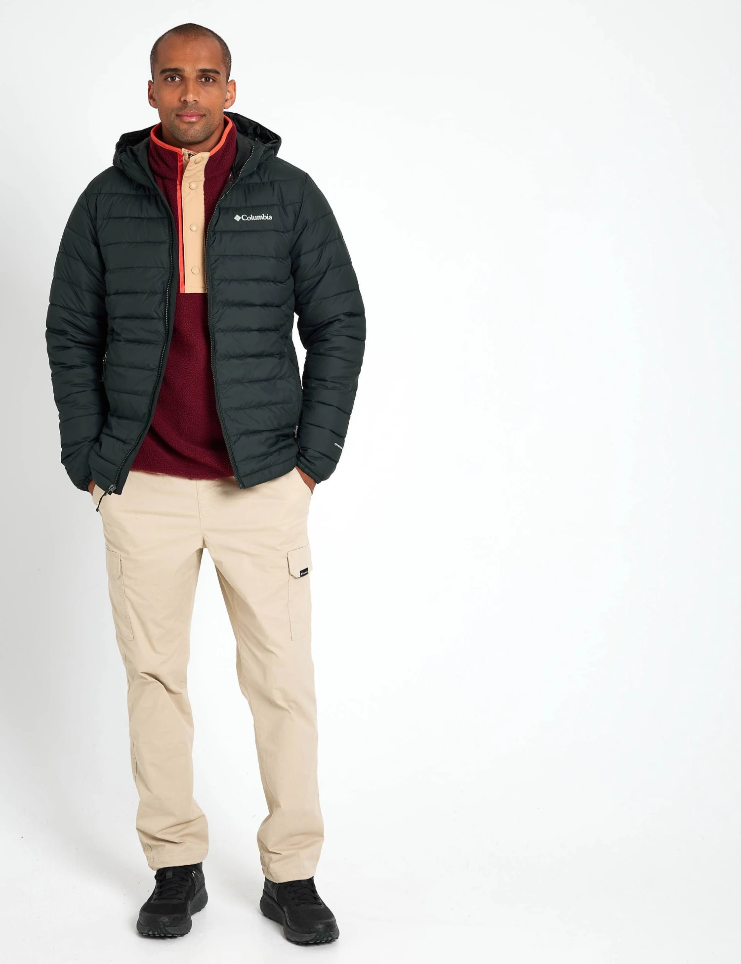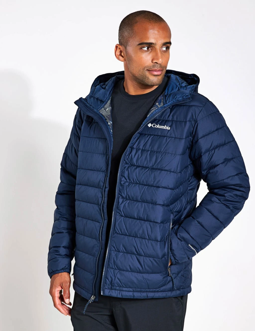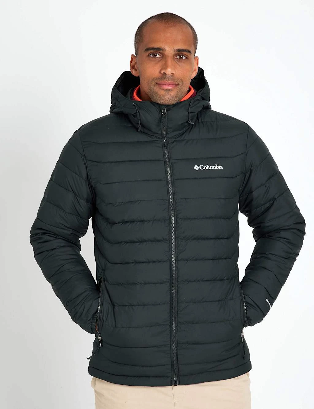 Stay warm when the temperature drops with this puffer jacket from Columbia. It’s made in a comfy regular fit, with a zip fastening and a snug funnel neckline to help lock in heat. This hooded style is made with light and breathable thermal insulation, plus a water-resistant finish to keep you dry in light showers. It’s designed with horizontal quilted stitching for a neat look, and has two side pockets to keep your essentials close.