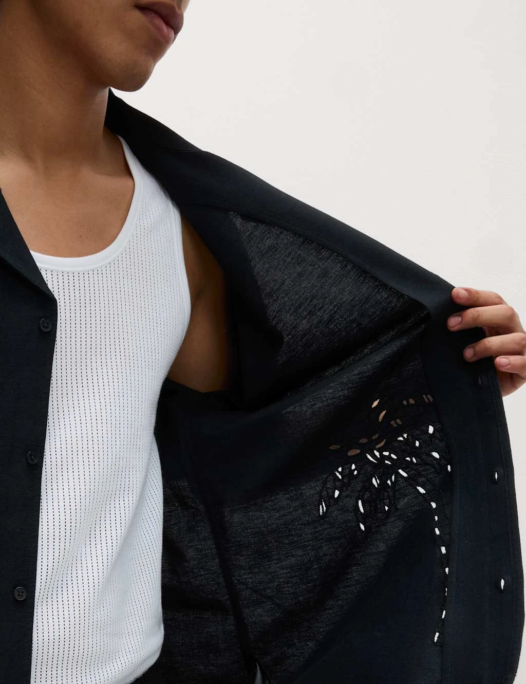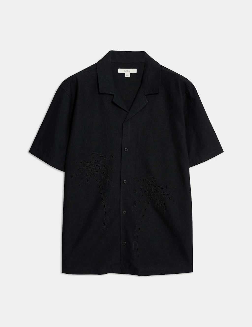 Celebrate the spirit of the tropics with this cotton blend shirt, embroidered with palm trees. It’s made in a regular fit with a Cuban collar for a laid-back look. The blend fabric includes linen for a crisp feel. M&S Collection: easy-to-wear wardrobe staples that combine classic and contemporary styles.