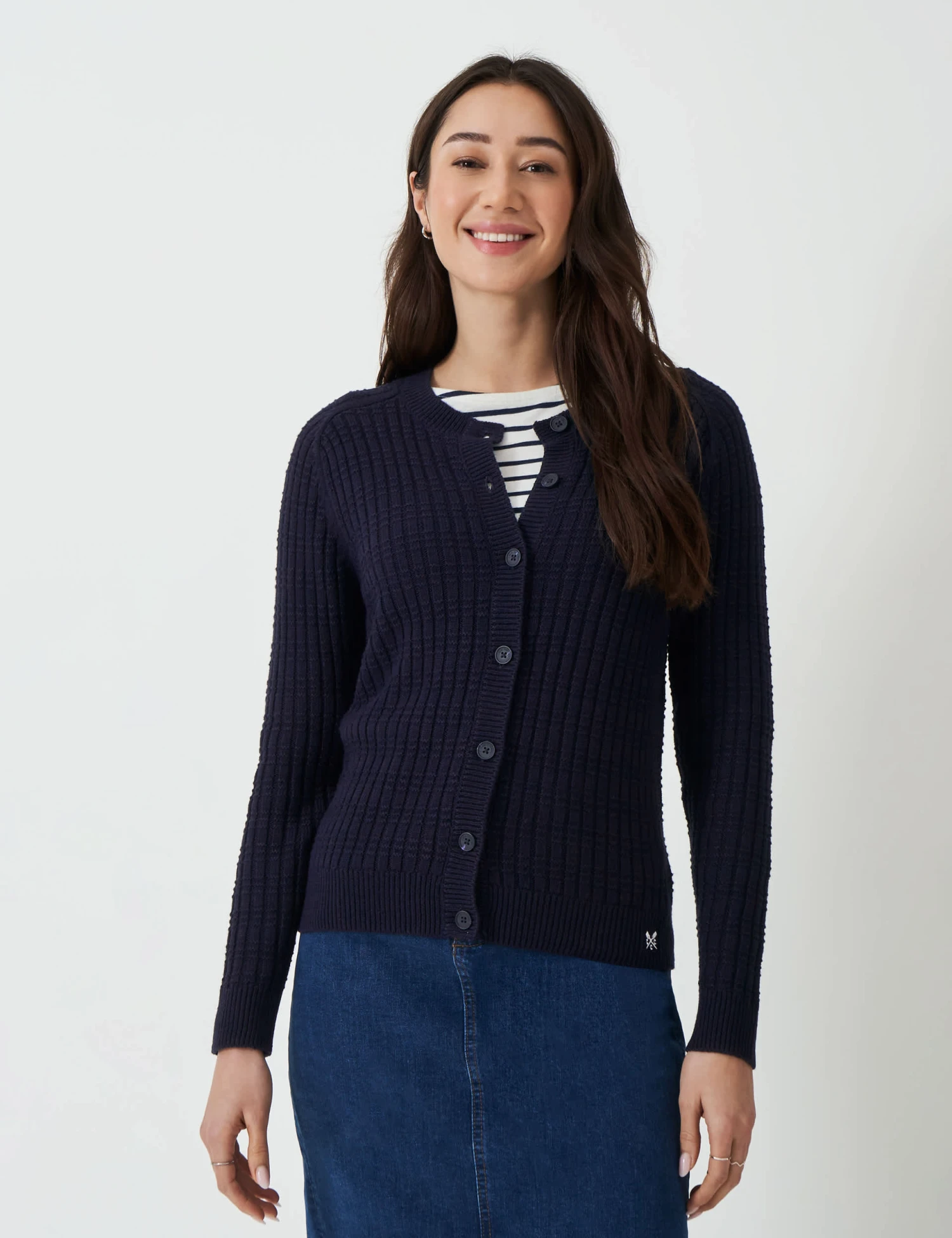 This cotton-blend cardigan by Crew Clothing is a versatile piece for your casual wardrobe. It’s knitted in a comfy regular fit, with neat button fastenings and a timeless crew neckline. The textured design adds a cosy finish.