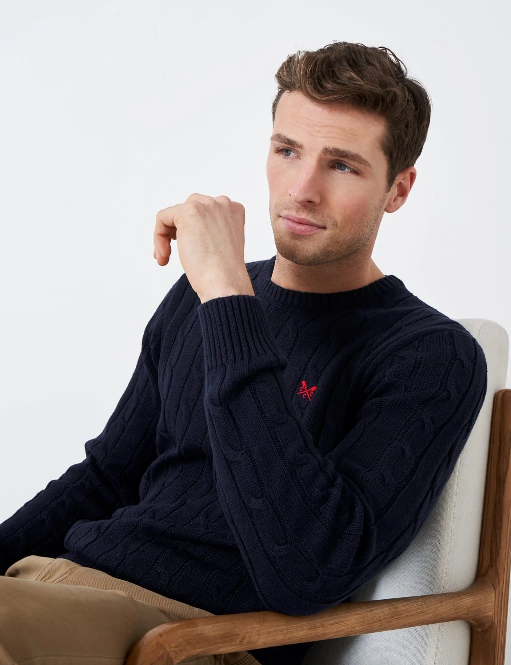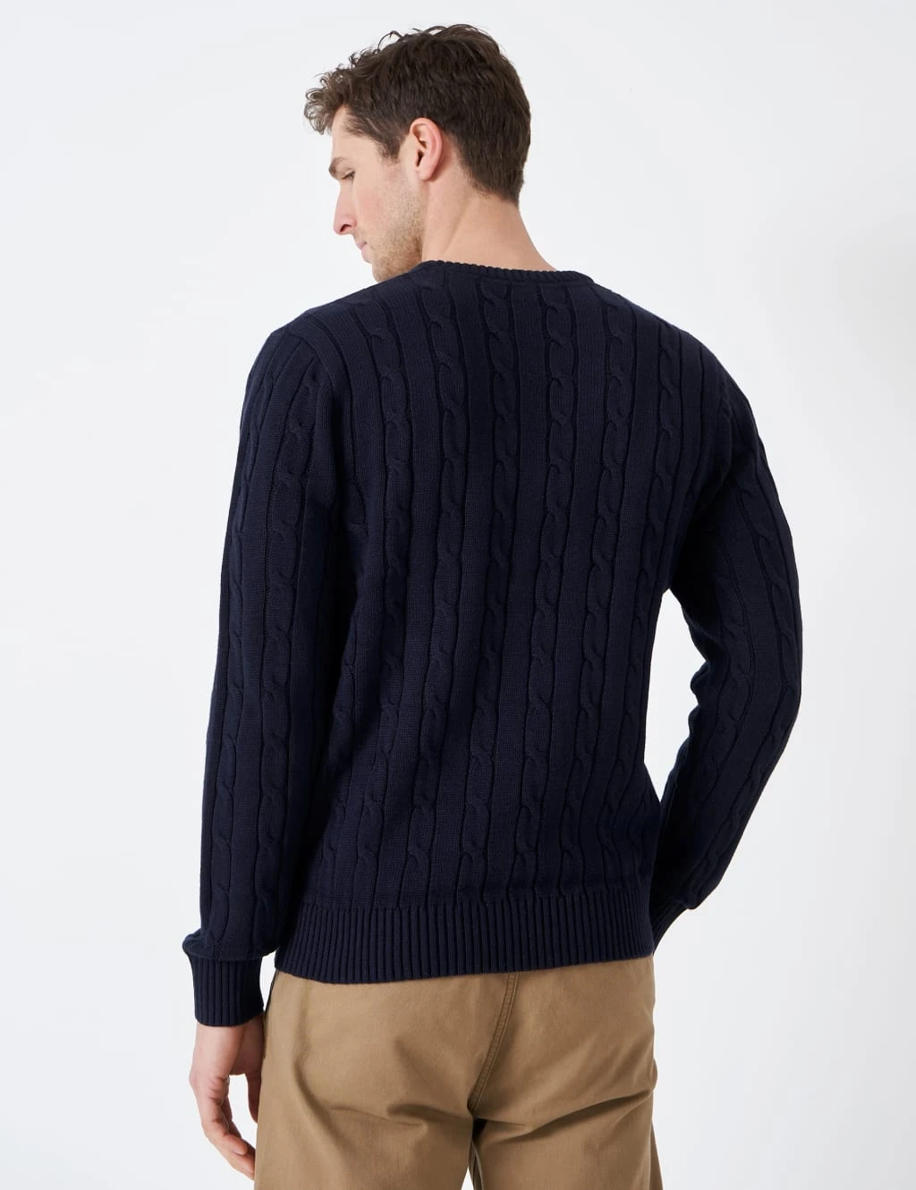 With its traditional cable design, this cotton-rich jumper from Crew Clothing makes a timeless addition to your knitwear. It’s made in an easy crew neck style, with ribbed trims at the collar, cuffs and neckline for a neat look. The brand’s crossed oars logo is embroidered on the chest for a premium finishing touch.
