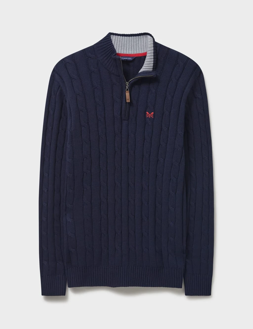 When the weather turns cooler, this cotton-blend jumper from Crew Clothing makes a smart extra layer. It’s knitted in a cable pattern for a classic textured look and features a half zip neckline so you can wear it your way. The brand’s distinctive crossed oars badge is embroidered on the chest and ribbed trims at the collar, cuffs and hem ensure a neat finish.