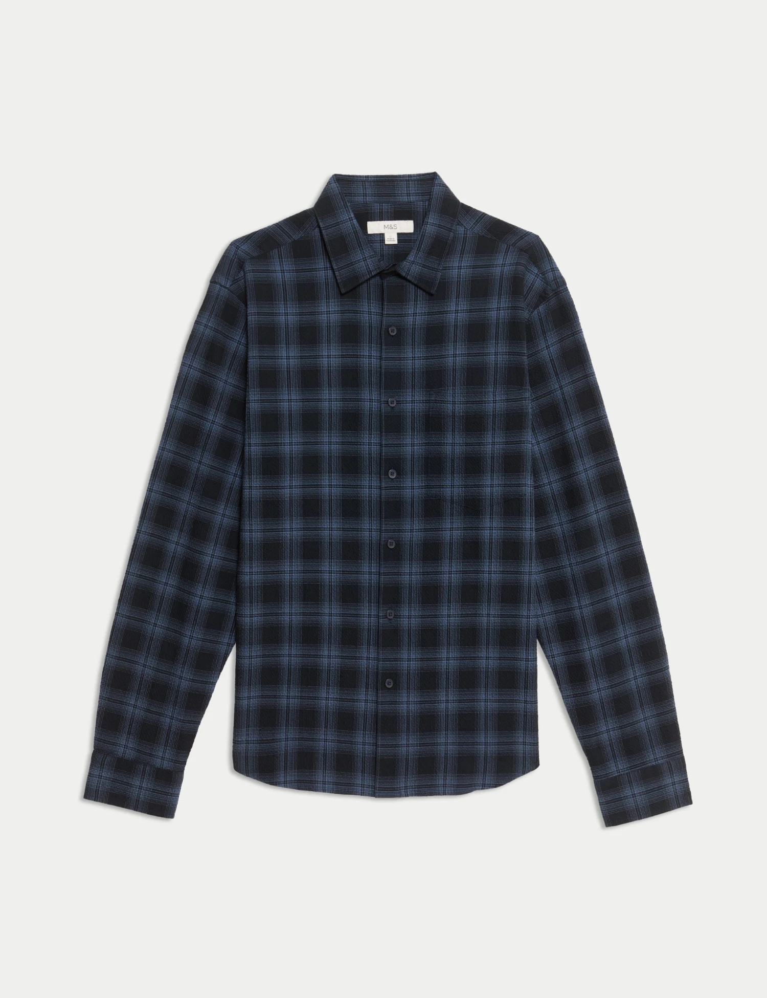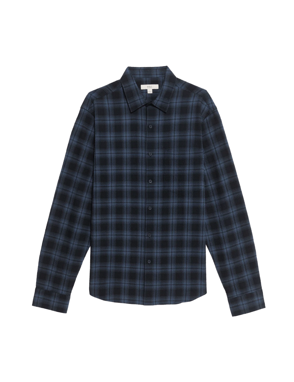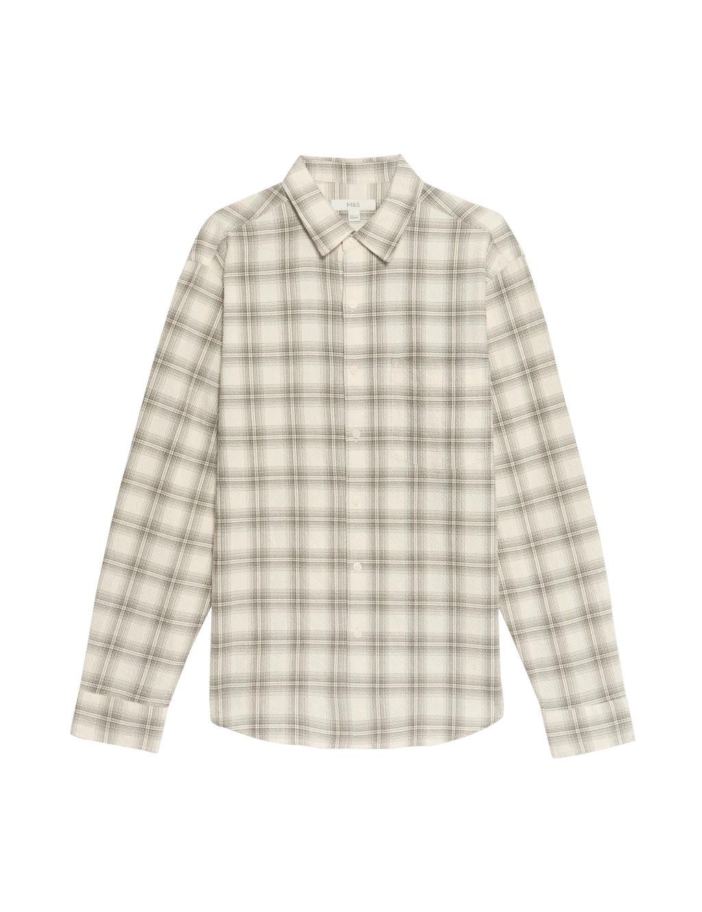 With its timeless checked pattern, this breathable cotton-rich seersucker shirt will make a stylish addition to your weekend wardrobe. It’s cut to a comfy regular fit for easy layering. Added stretch in the soft fabric ensures freedom of movement. Smart button-through fastening. M&S Collection: easy-to-wear wardrobe staples that combine classic and contemporary styles.