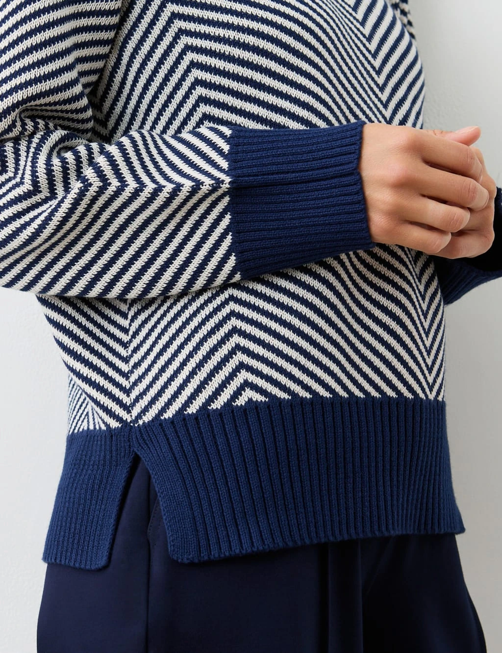 This Finery London cotton-rich jumper is a timeless piece that will see you through many a chilly day. It’s made in an easy regular fit with an artistic chevron print.
