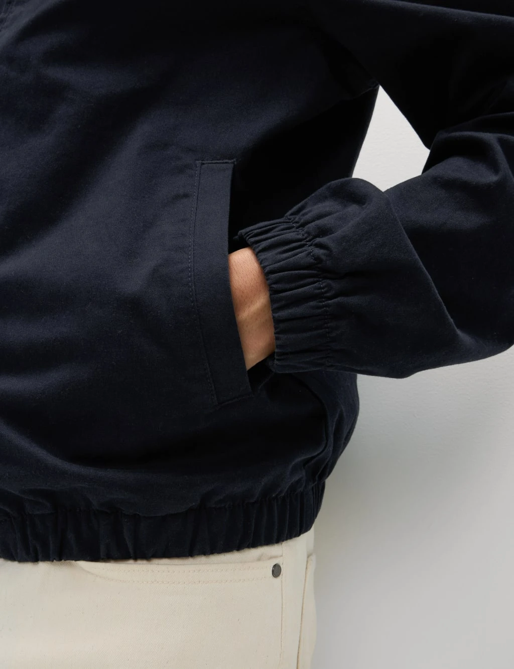 Fashioned from breathable cotton-rich fabric, this Harrington jacket is smooth in every sense. It’s made in an easy regular fit and has soft lining for an extra layer of comfort. Flexible added stretch gives you freedom of movement. Its classic look is completed by the polished metal zip fastening and two side pockets. There’s an internal pocket for small personal items, too. M&S Collection: easy-to-wear wardrobe staples that combine classic and contemporary styles.
