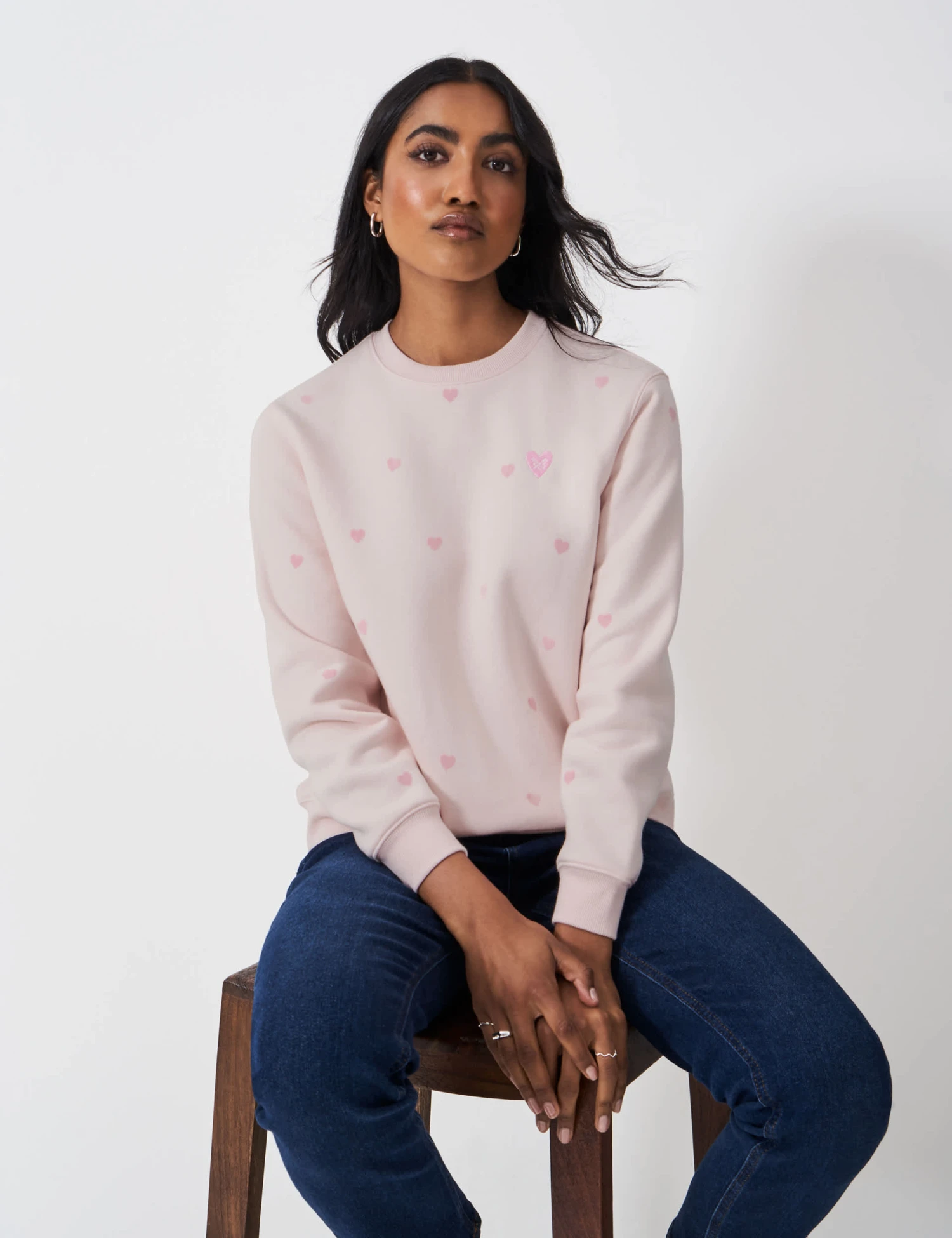This Crew Clothing sweatshirt is made from super-soft fabric for a luxurious feel. It’s cut in a regular fit, with a neat crew neck and ribbed trims. For a feminine touch, this comfy piece is decorated with a tonal heart print and signed off with the brand’s logo inside one on the chest.