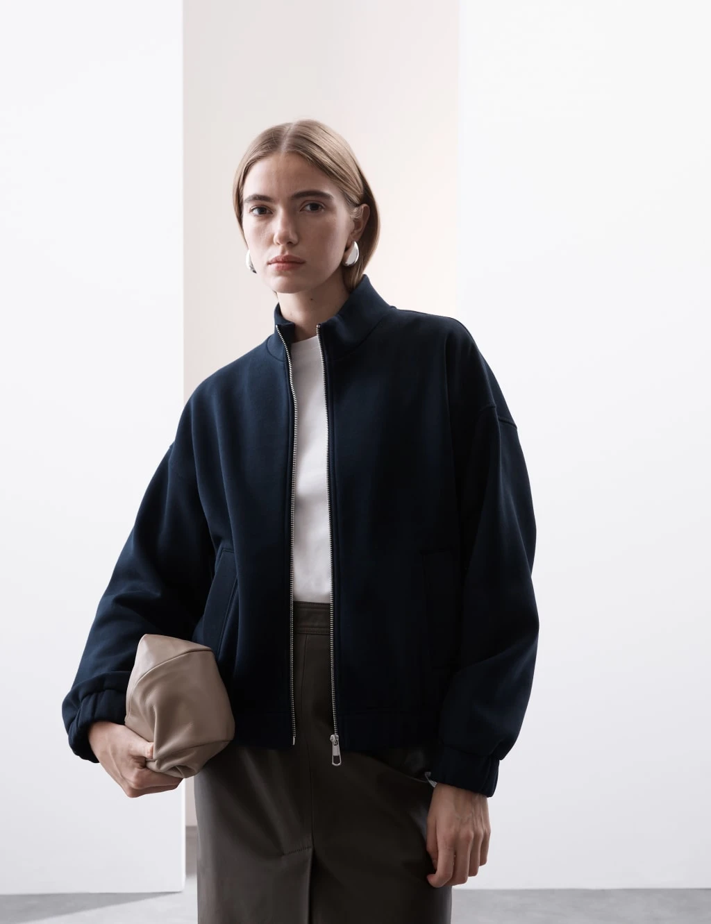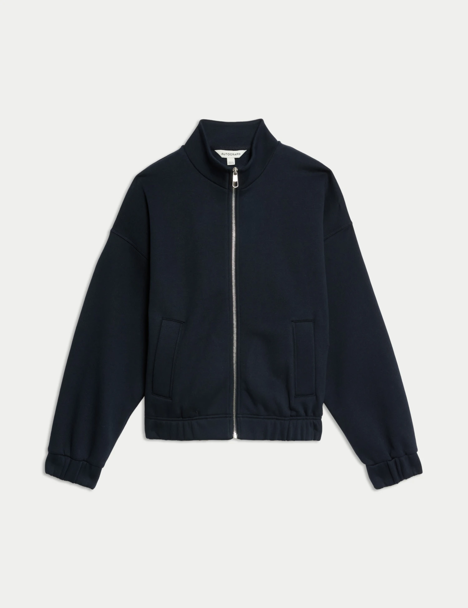 Upgrade your casual wardrobe with this cotton-rich jacket from our Autograph collection. Designed in a regular fit, it features a high neck and zip-through front for a modern, versatile look. The brush-back fabric provides a luxuriously soft feel, both inside and out. Autograph: premium investment pieces with contemporary cuts and refined finishing touches.