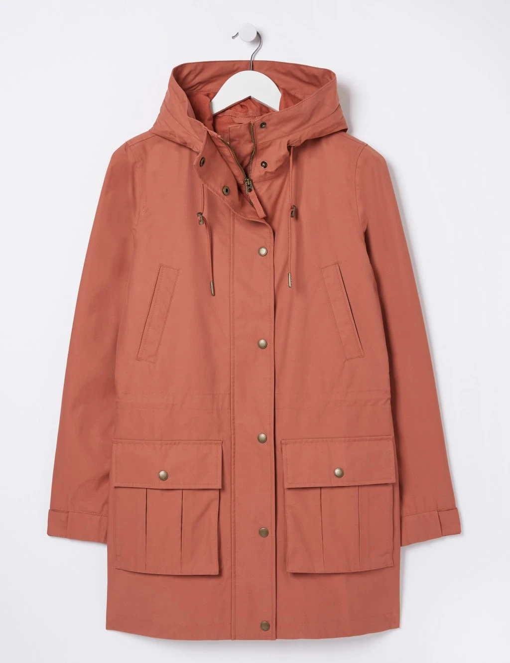 This classic raincoat from FatFace is made from a cotton-rich fabric for comfort and breathability. It’s cut to a regular fit, with a generous-sized drawstring hood for cosiness. The popper and zip fastening helps to keep you dry. Plus, you can adjust the cuffs for a closer fit. The coat also features an eye-catching pair of large patch pockets, which fasten with matching poppers, and two handy chest pockets.