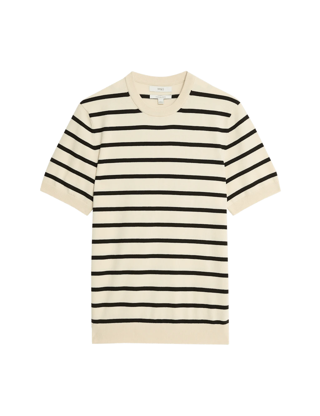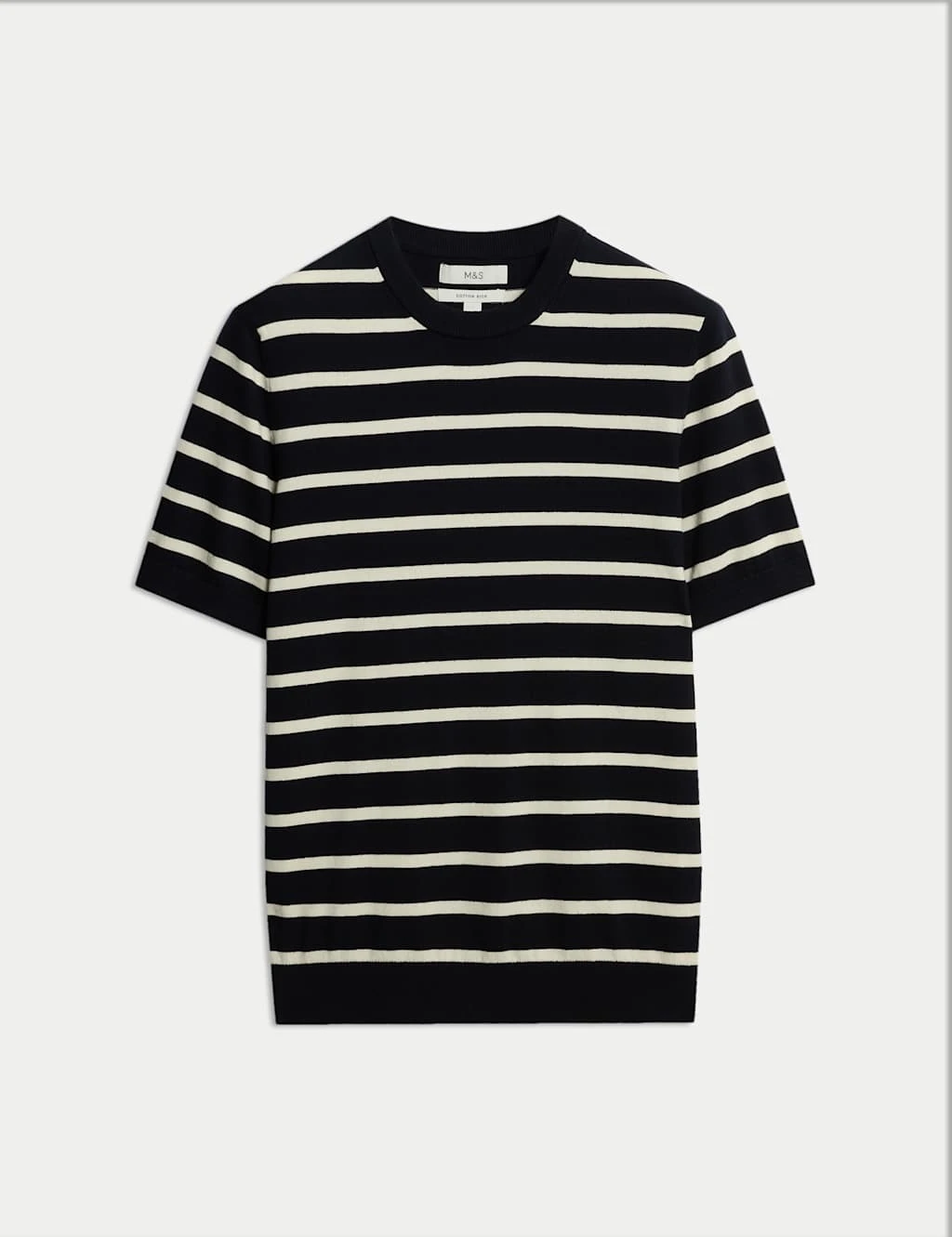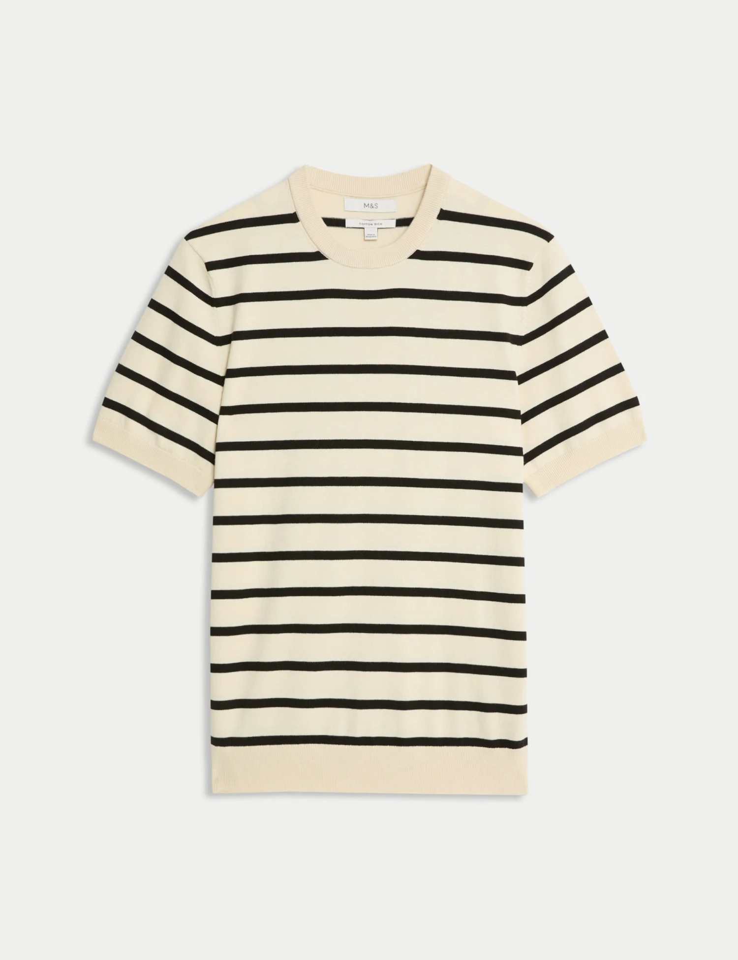 With its bold striped pattern, this comfy, breathable cotton-rich knitted t-shirt will make a stylish addition to your casual outfit options. It has a classic crew neck, and chunky ribbed trims that are a nice regular fit.M&S Collection: easy-to-wear wardrobe staples that combine classic and contemporary styles.