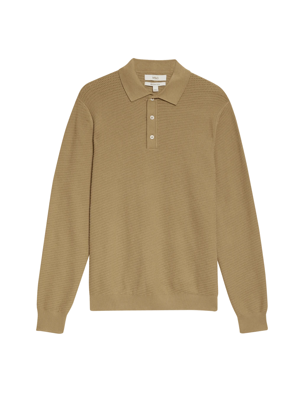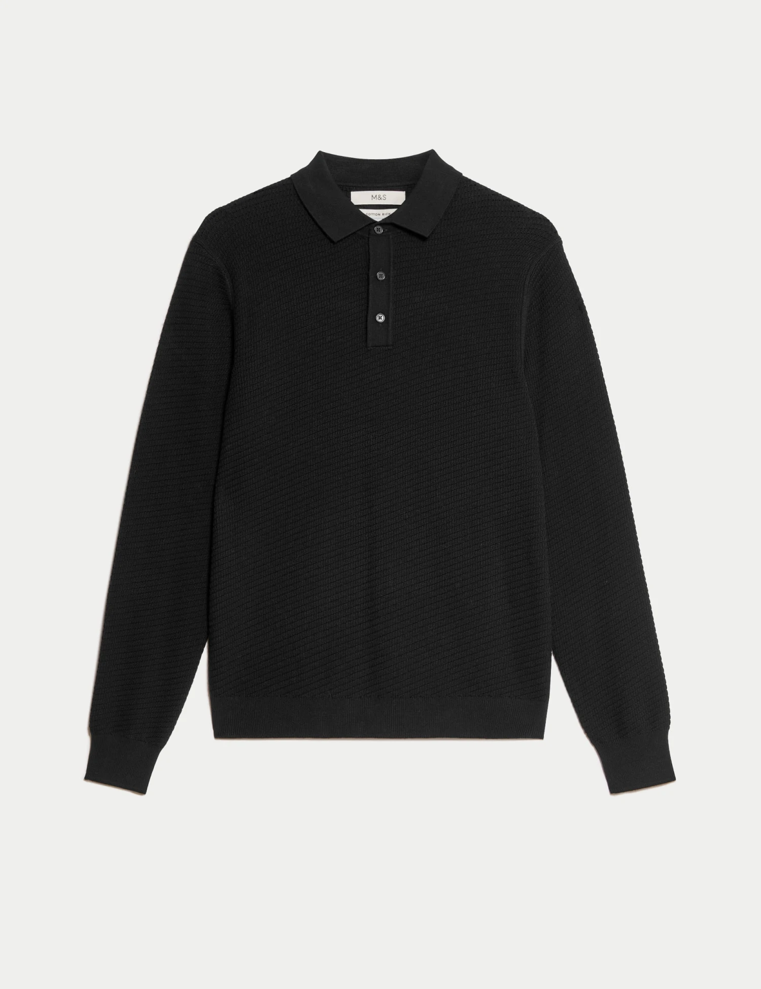 With its textured knit, this cotton-rich polo shirt will make a stylish addition to your smart-casual wardrobe. The collar neckline features a neat button fastening. Ribbed trims on the cuffs and hem complete the look. M&S Collection: easy-to-wear wardrobe staples that combine classic and contemporary styles.