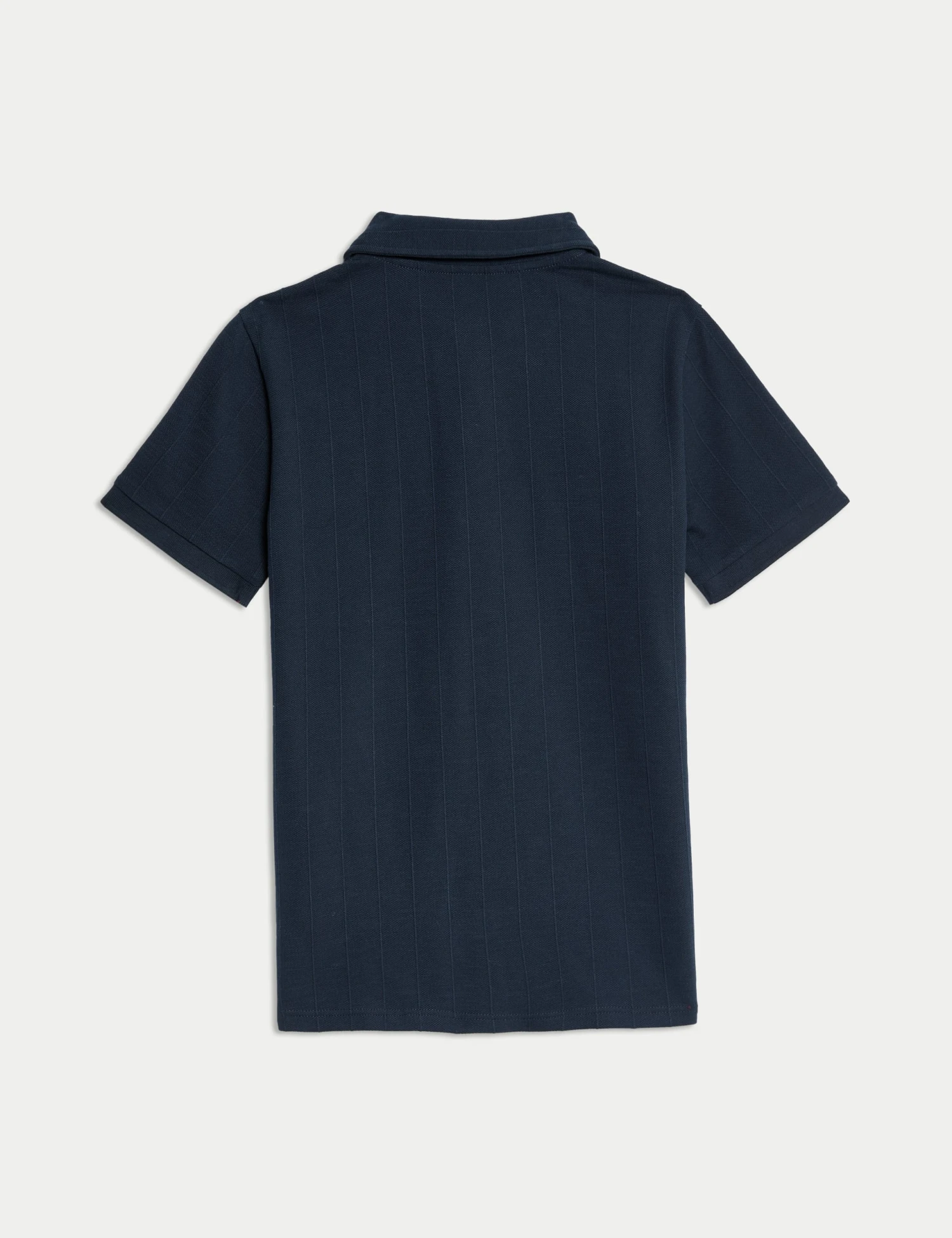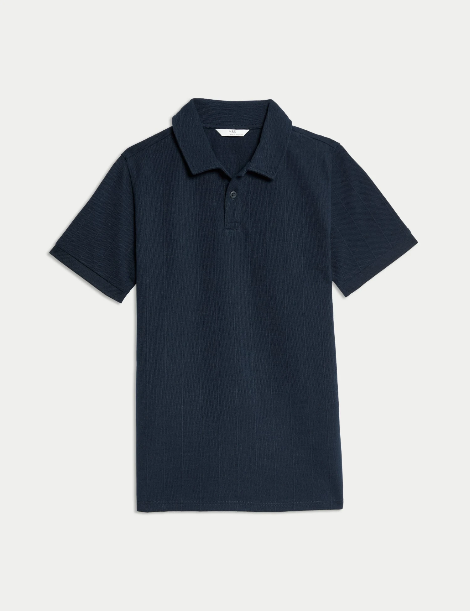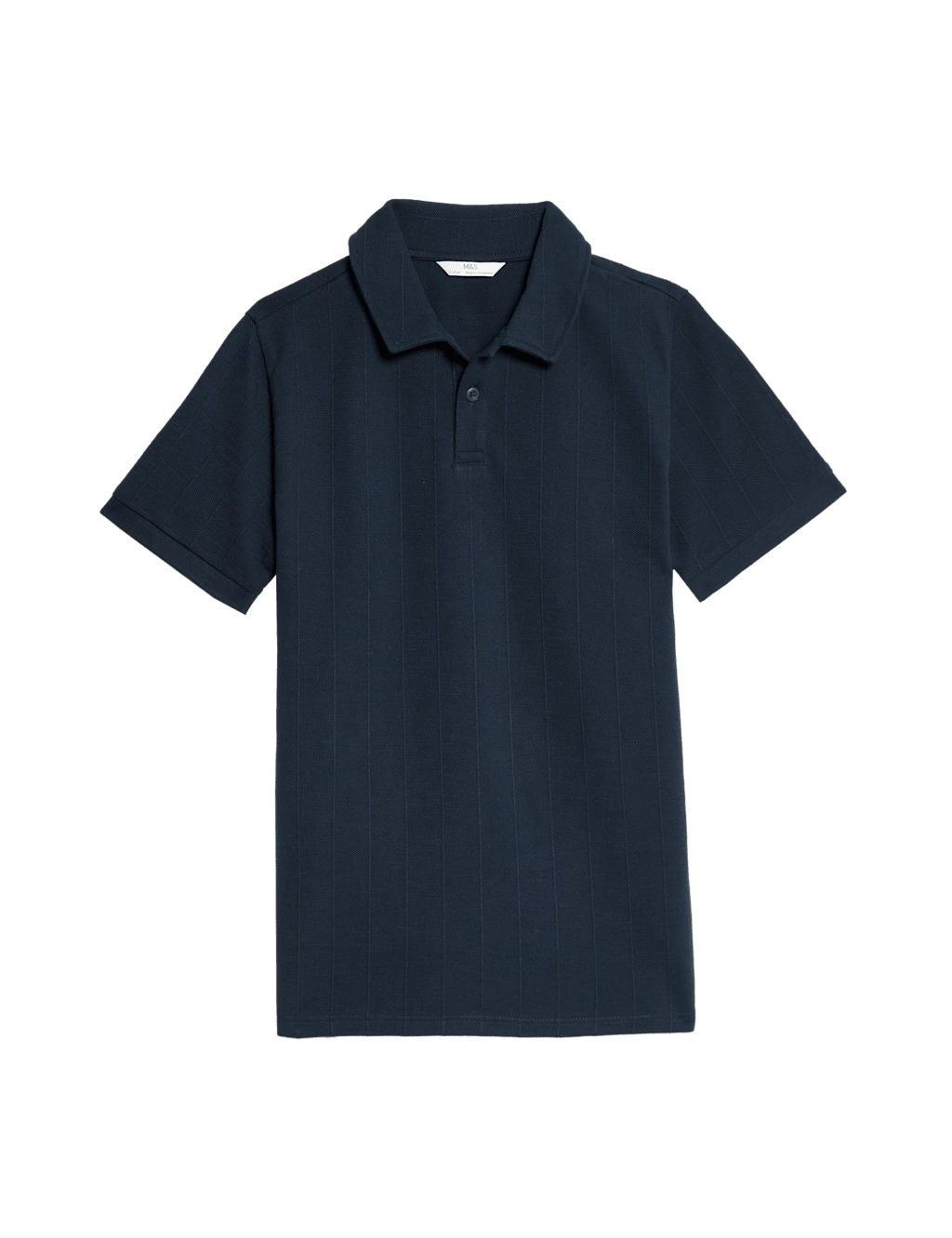 This kids’ polo shirt is crafted from a textured cotton-rich fabric for smart-casual style. It’s made in a regular fit, with an open collar and added stretch for comfort.