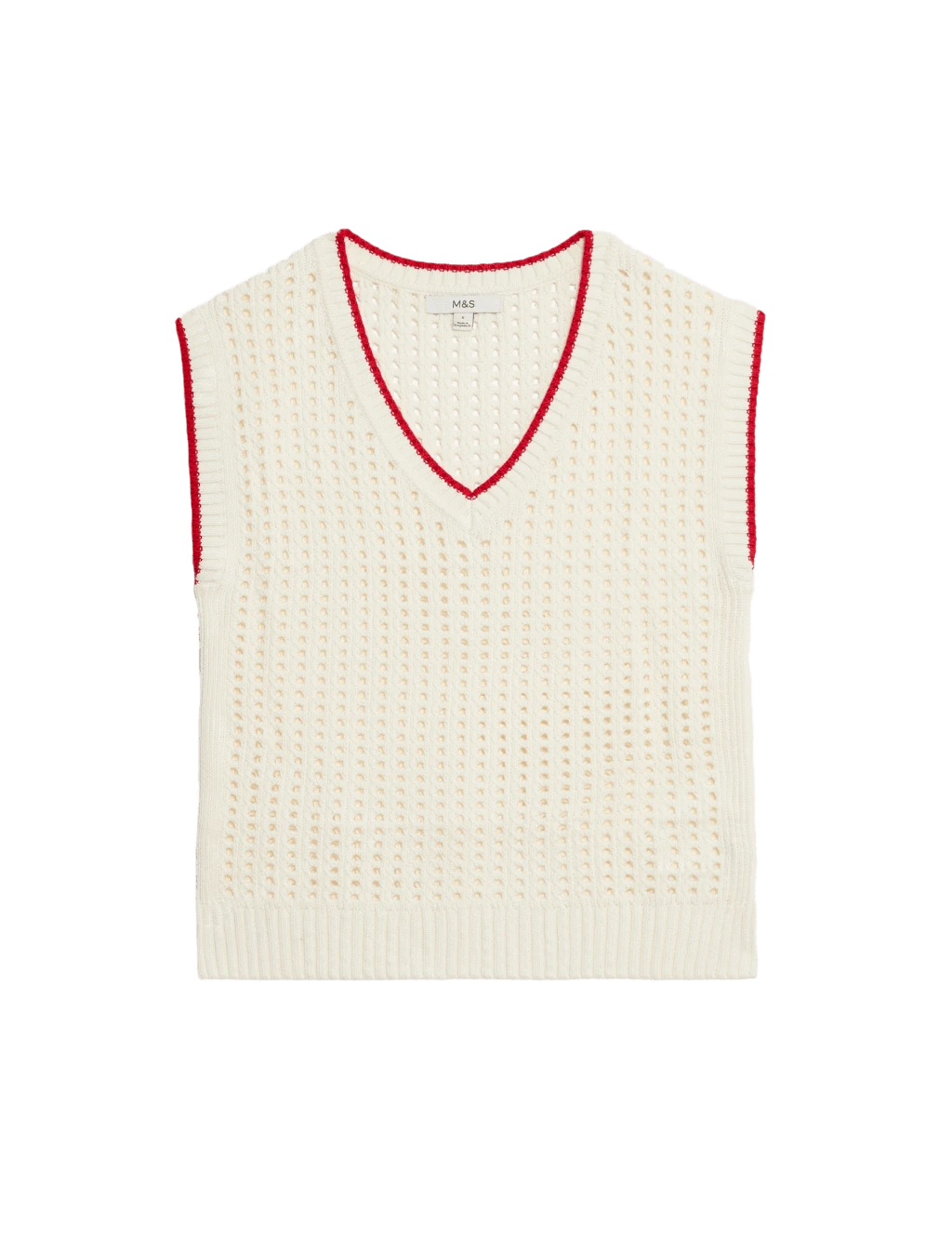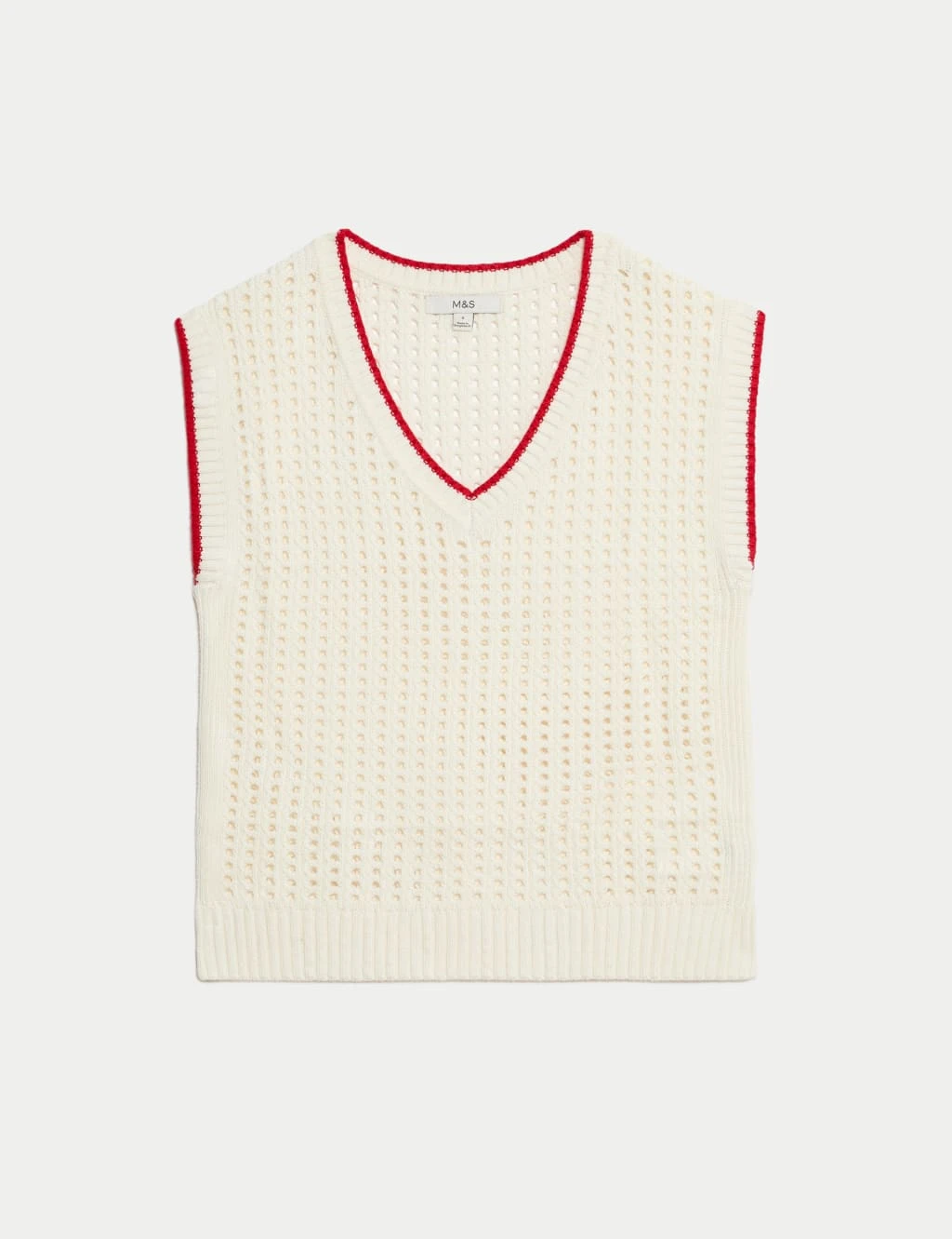 Elevate your wardrobe with this stylish cotton-rich knitted vest. The regular fit, plunging v-neckline and sleeveless shape make it effortlessly comfortable and easy to layer. Textured yarn brings a stylish touch, while contrast tipping and ribbed trims add a polished finish. M&S Collection: easy-to-wear wardrobe staples that combine classic and contemporary styles.
