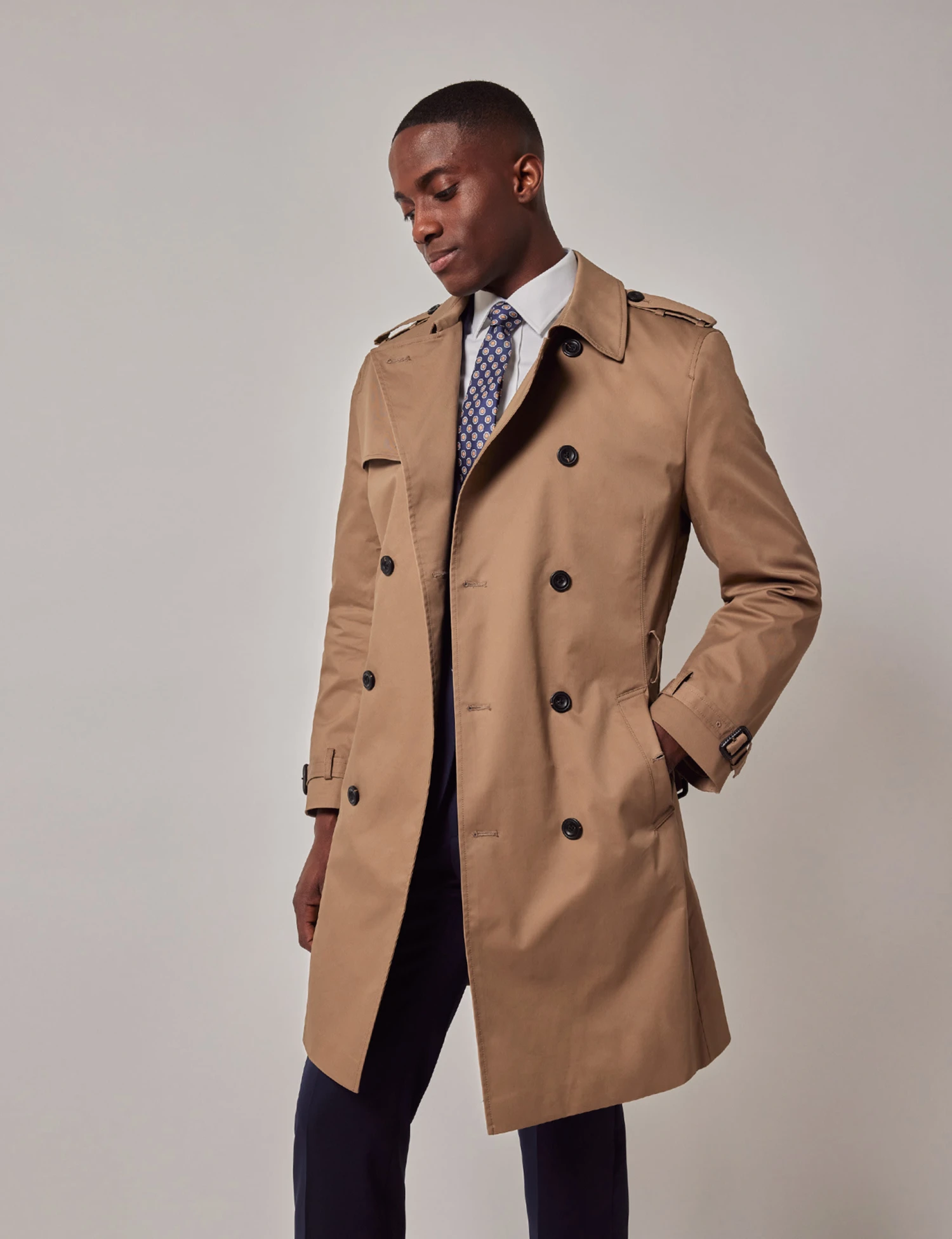 This cotton-rich trench coat from Hawes & Curtis is a timeless piece that’s perfect for layering. It’s cut in a regular fit, with a smart collared neck and a double-breasted button closure. The cuffs feature buckle detailing for a neat look. Two side pockets offer space for your essentials.