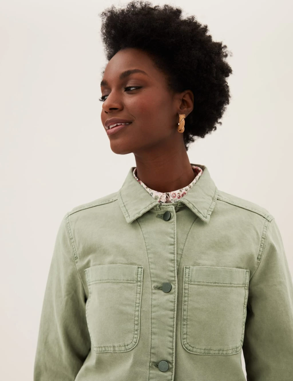 Add an edge to your look with this cotton-rich utility jacket, inspired by carpenter style. It’s cut to a regular fit with a smart collared neck. The four-pocket design includes two on the chest and two pockets at the bottom so you’ve got plenty of room for essentials. We only ever use responsibly sourced cotton for our clothes.