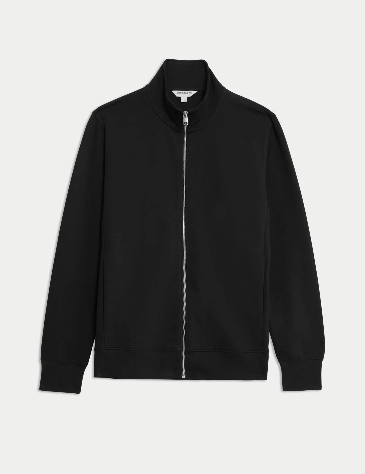 This cotton-rich jacket from our Autograph collection will add a stylish layer to your casual outfits. It’s made to a comfy regular fit from smooth scuba fabric with added stretch. A funnel neck keeps you warm, while a zip-through fastening means it’s easy to slip on and off. Side pockets are perfect for warming hands or storing your essentials. Matching joggers are available. Autograph: premium investment pieces featuring contemporary cuts and refined finishing touches.