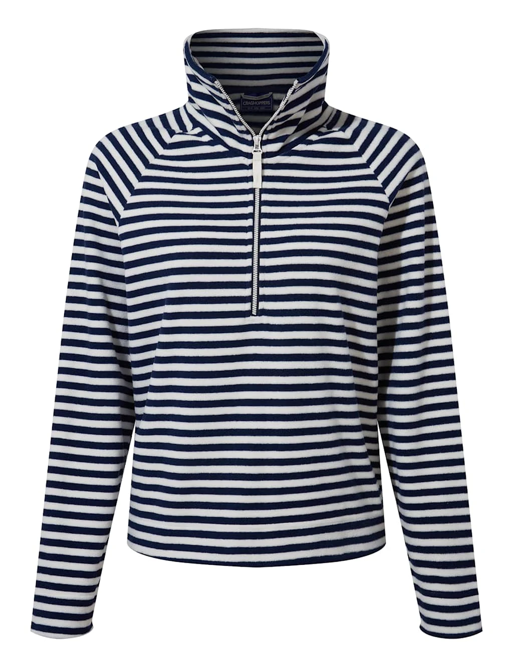 Keep the chill at bay with this striped sweatshirt by Craghoppers. It’s crafted in a regular fit, with a half-zip at the funnel neck to lock in heat. Laid-back raglan sleeves accentuate the cosy feel, while an embroidered logo at the hem provides a signature sign-off.