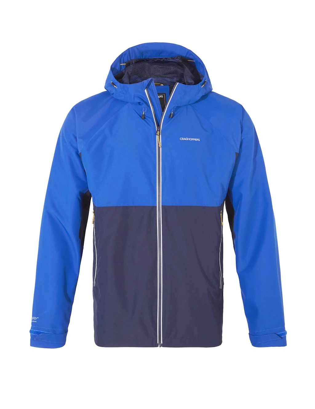 This zip-through jacket from Craghoppers is made with the brand’s Aquadry technology for breathable, waterproof protection from the elements. It’s cut in a regular fit, with a high funnel neckline and a drawcord hood. Riptape fastenings at the cuffs, plus an adjustable hem, ensure a perfect fit. As well as the zipped side pockets, there’s an additional interior pocket that’s sized to hold an OS map.