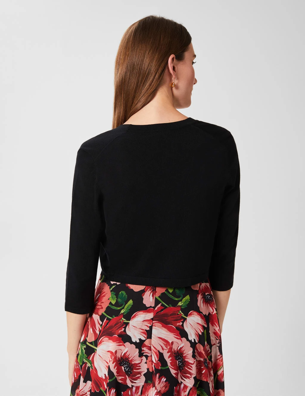 This cardigan from Hobbs makes a versatile extra layer for smart occasions. This regular fit piece is knitted in a cropped bolero-style shape with a neat buttonless front. Three-quarter sleeves add a feminine finishing touch.