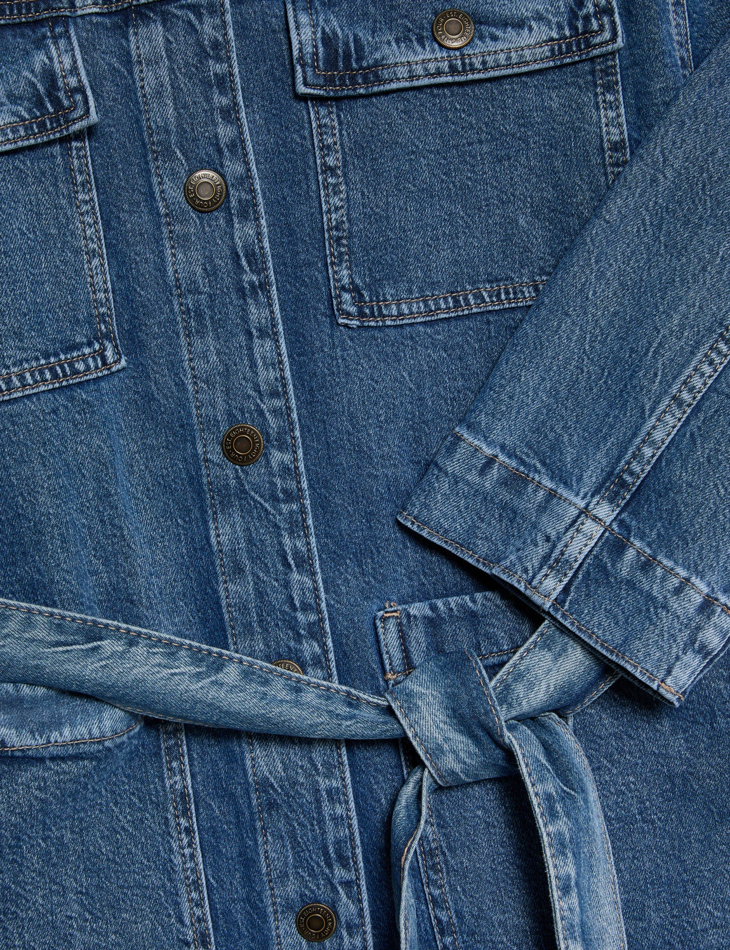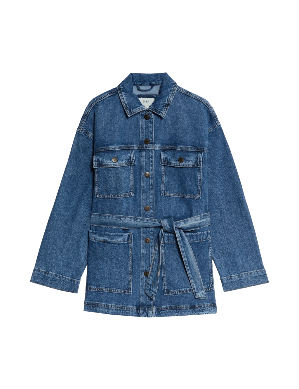 Embrace the utility trend in this cotton-rich denim jacket. It’s cut in a relaxed fit with dropped shoulders that maintain the casual feel. A self-tie belt lets you cinch your waist and achieve a defined silhouette. This wardrobe staple is finished with practical popper fastening and four handy pockets for an authentic carpenter-style look. M&S Collection: easy-to-wear wardrobe staples that combine classic and contemporary styles.